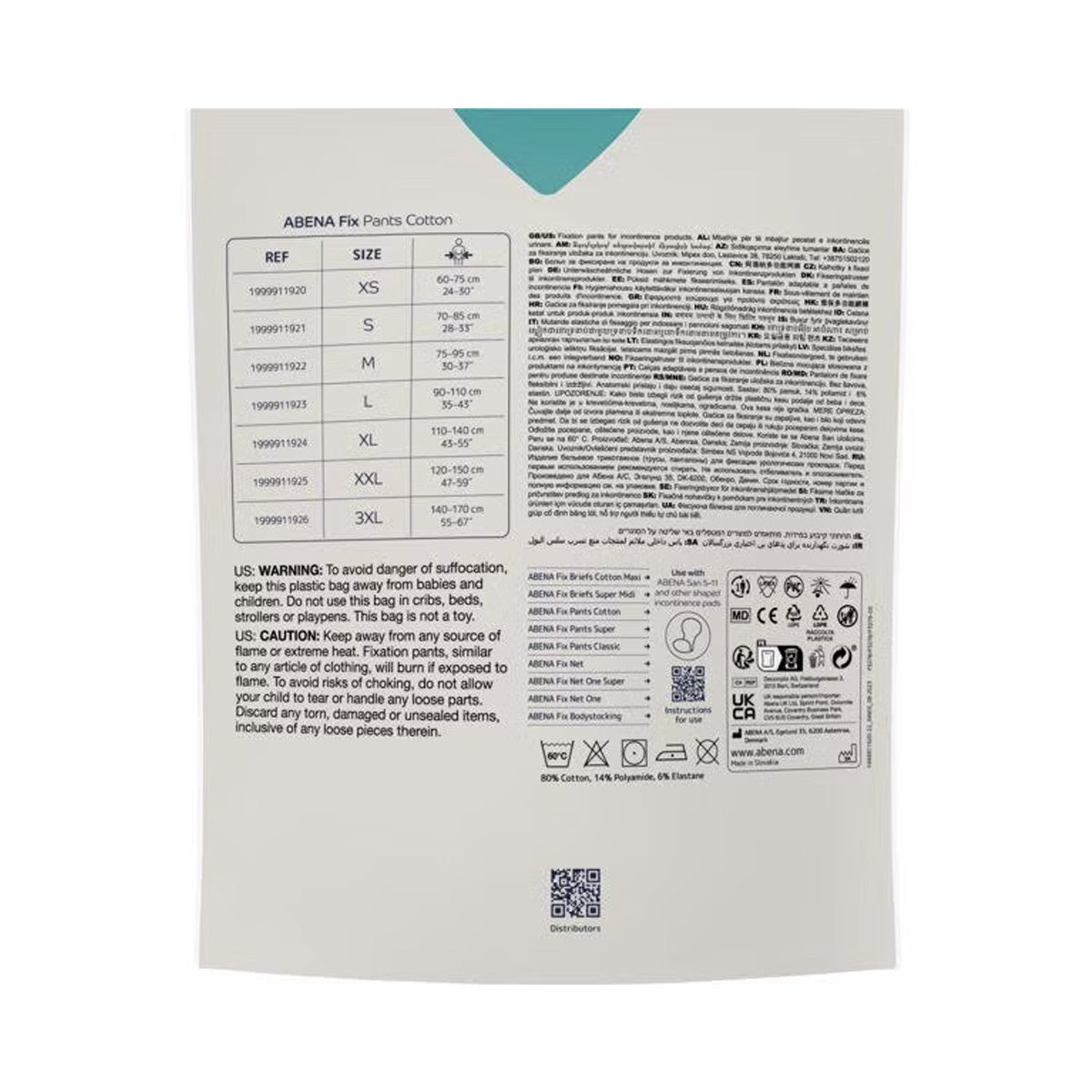 ABENA Fix Pants Cotton es un pantalón de fijación elástico y transpirable con perneras, fabricado principalmente con material de algodón. ABENA Fix Pants Cotton se debe usar como parte de la solución absorbente para incontinencia de 2 piezas, para la fijación de una compresa para incontinencia. Los pantalones de fijación son más anchos en la zona de la entrepierna y más elásticos que la ropa interior normal.