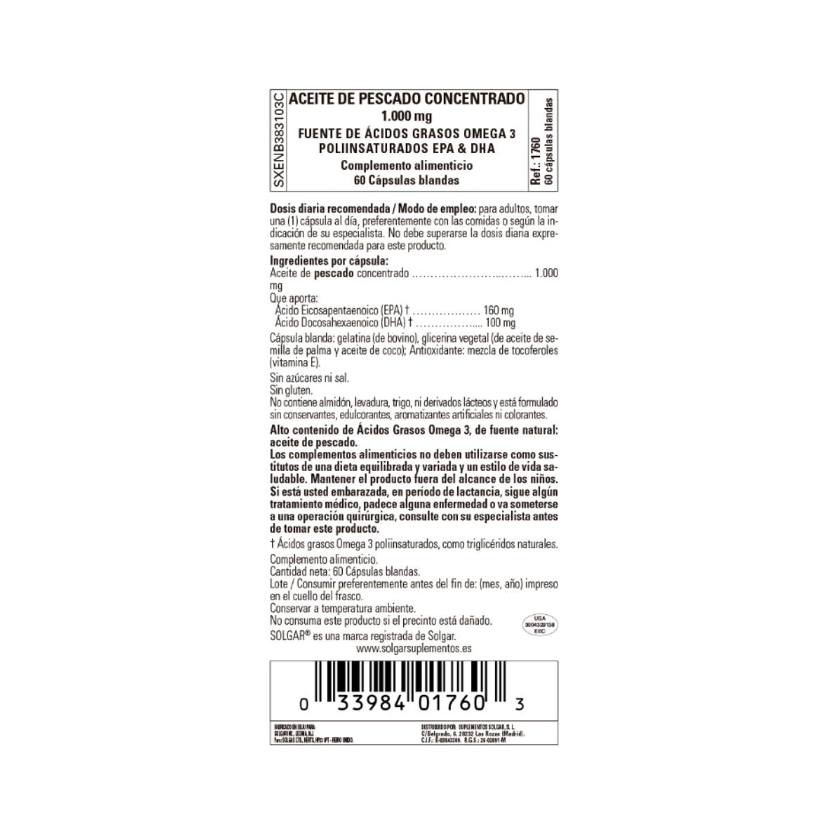 Toda la información sobre "Aceite de pescado concentrado Solgar 60 cápsulas"
