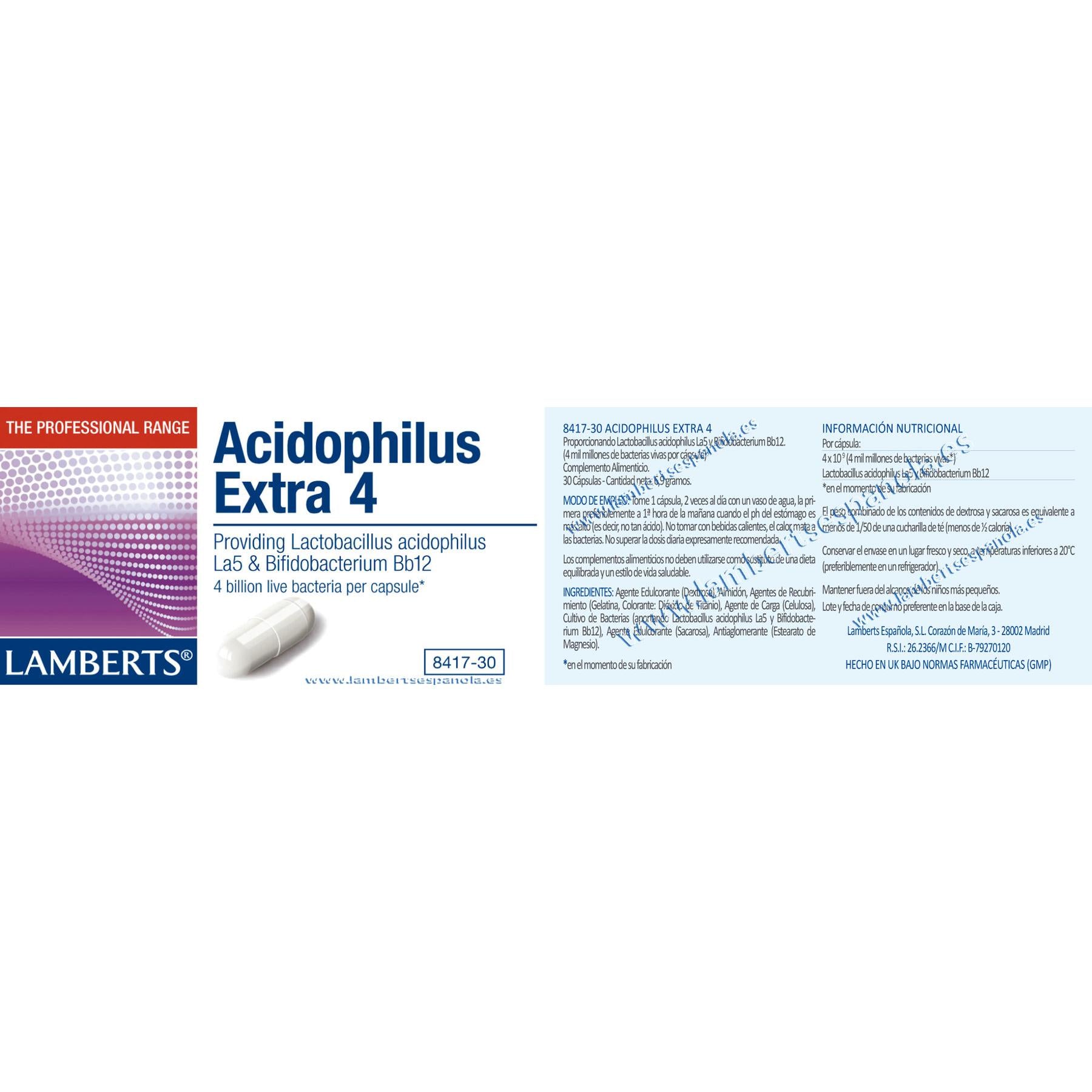 Toda la información sobre "Acidophilus Extra 4, Lamberts 30 capsules"