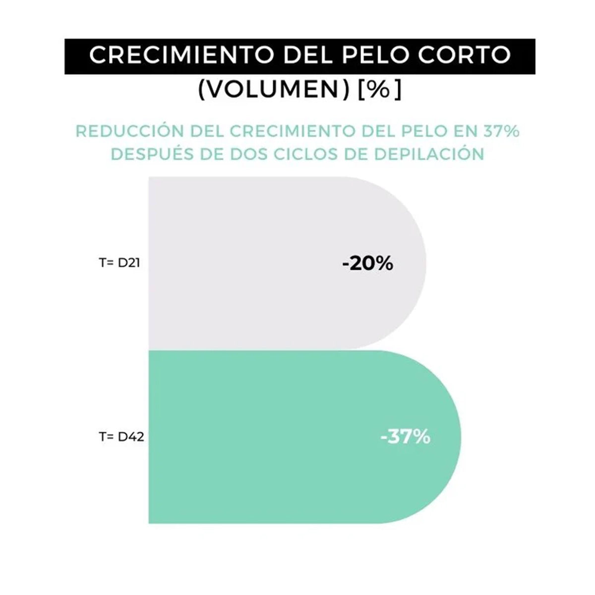 - Activo retardante: Combinación de activos procedentes de la Palma Americana, Hierba de Sauce Rosa y Calabaza que ayuda a retrasar el crecimiento del pelo y reducir la pilosidad.