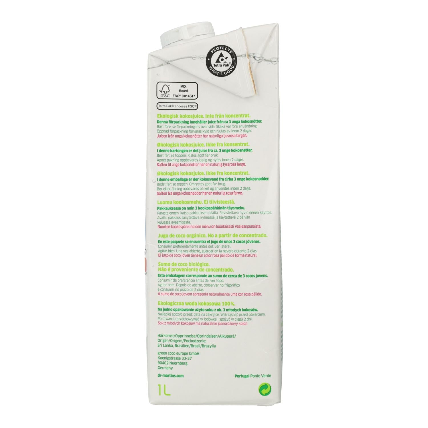 Toda la información sobre "Agua de Coco Natural Dr. Martins 1 L"