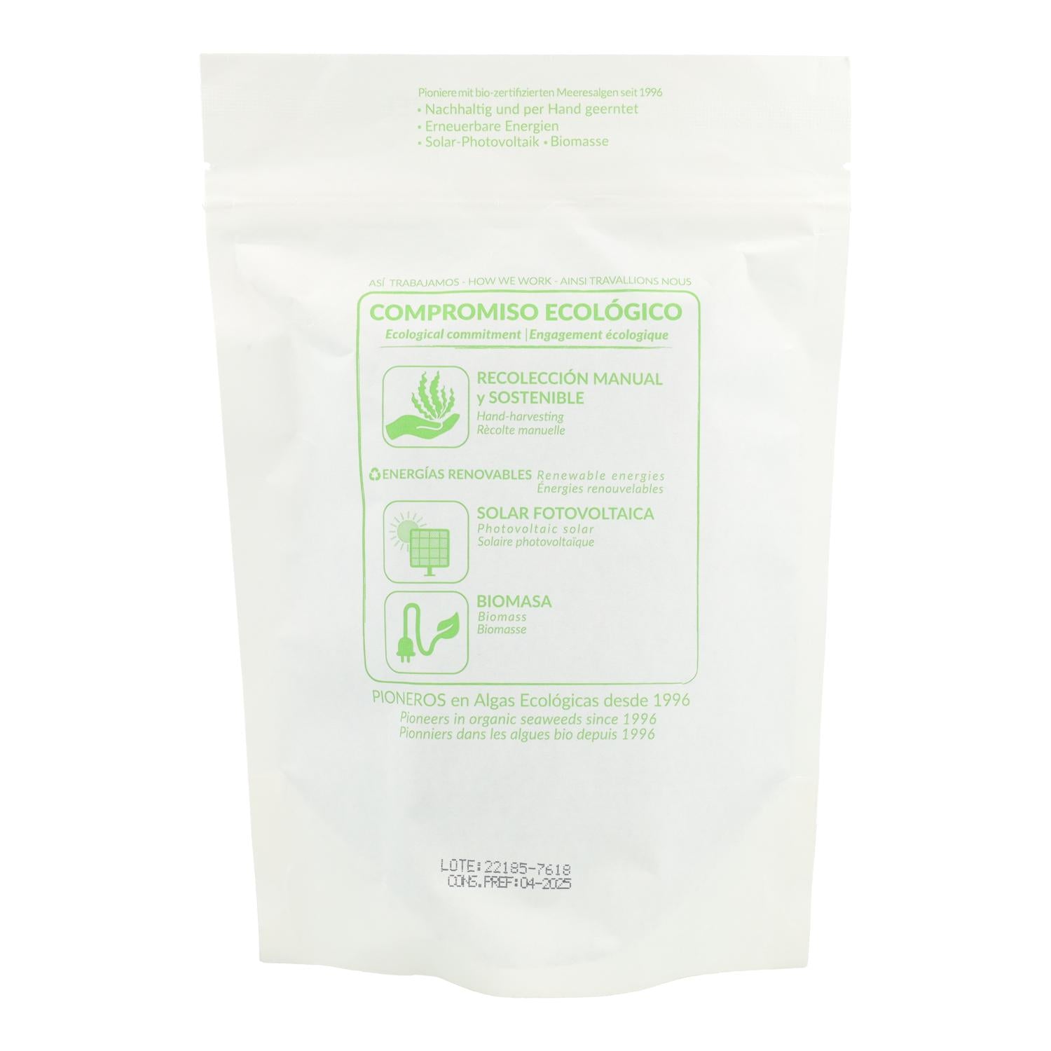 Alga wakame ALGAMAR. es un alga atlántica silvestre de aguas profundas y fino sabor. Rica en proteínas de alta digestibilidad, sales minerales (excepcional aporte de calcio), magnesio, fósforo, yodo y fibra.