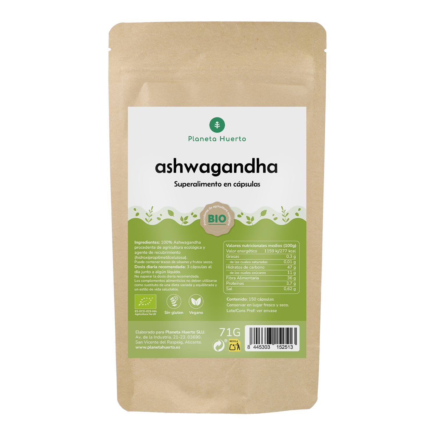 Toda la información sobre "Ashwagandha BIO Planeta Huerto 150 cápsulas"