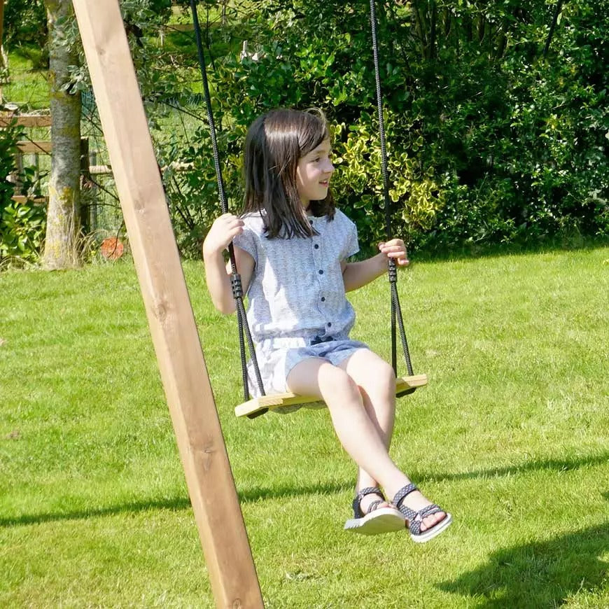 El columpio de madera para niños OBJECTIF NATURE ha sido diseñado para tener un menor impacto en nuestro planeta . Por eso el asiento es de madera. Las anillas de seguridad están fabricadas en metal, lo que proporciona mayor resistencia. La madera ya está protegida .