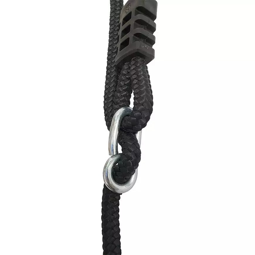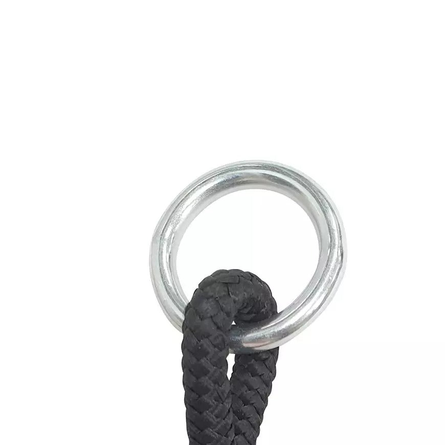 El columpio infantil es fácil de montar, basta con fijar las anillas metálicas a los mosquetones.