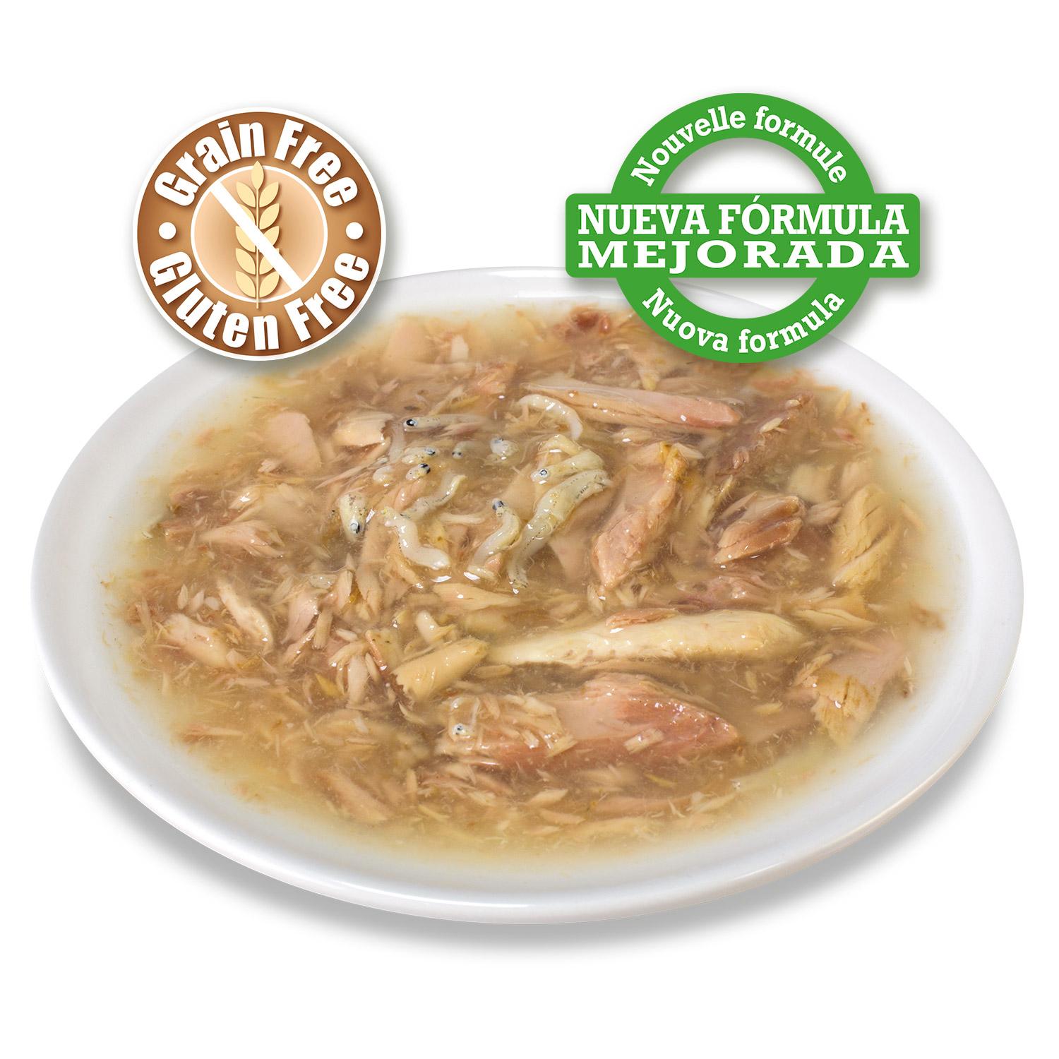 - Con atún (56,25%) y espadín (3,75%), que aportan nutrientes marinos esenciales.