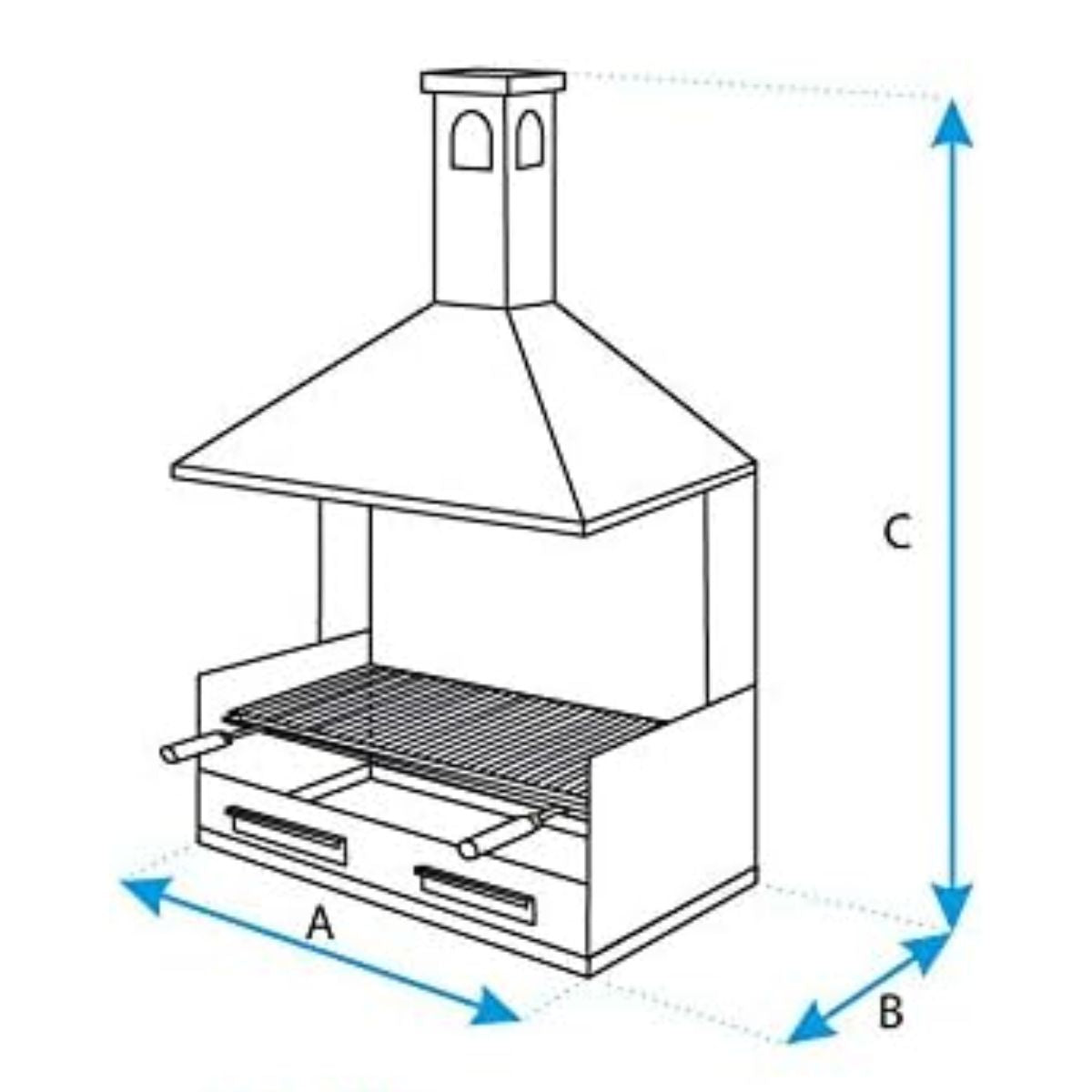 - Parrilla tipo argentino en forma de v con puños de madera, canaliza la grasa hasta la parte delantera, para que la grasa no caiga encima del carbón.