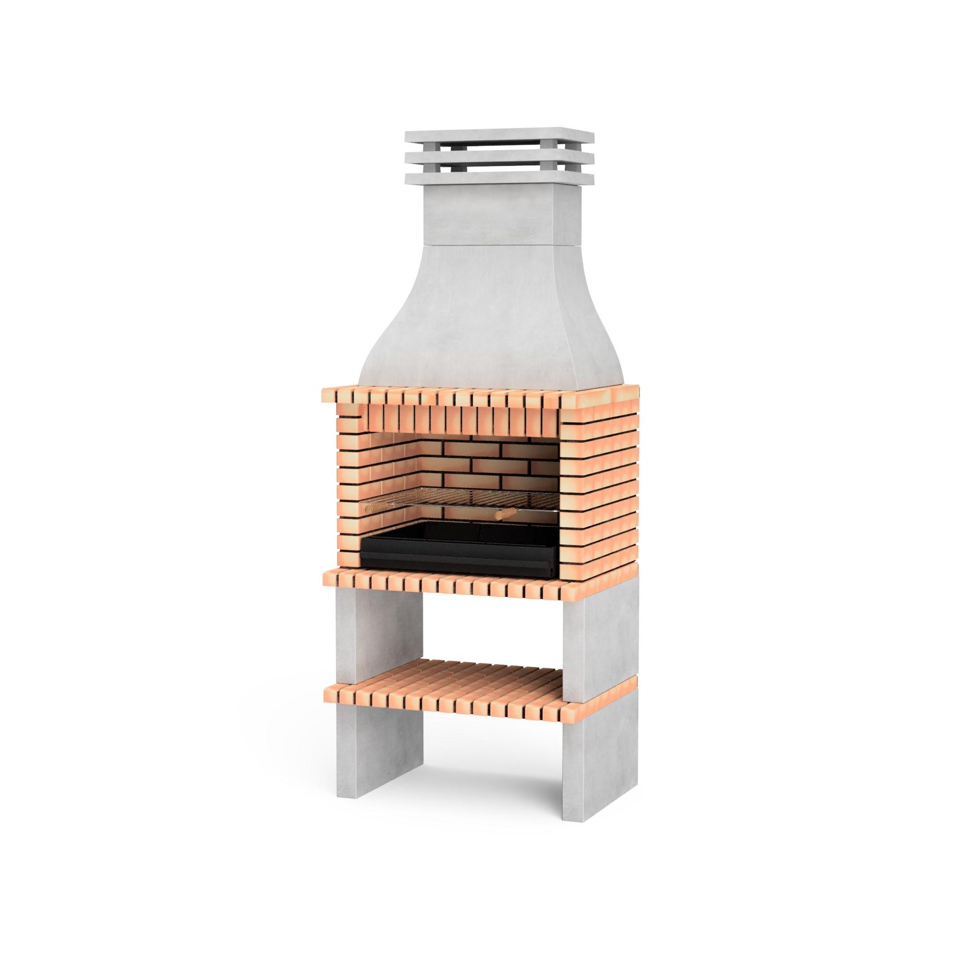 Barbacoa tradicional de tamaño familiar, fabricada en ladrillo y hormigón refractario, con parrilla de 77 cm de ancho.