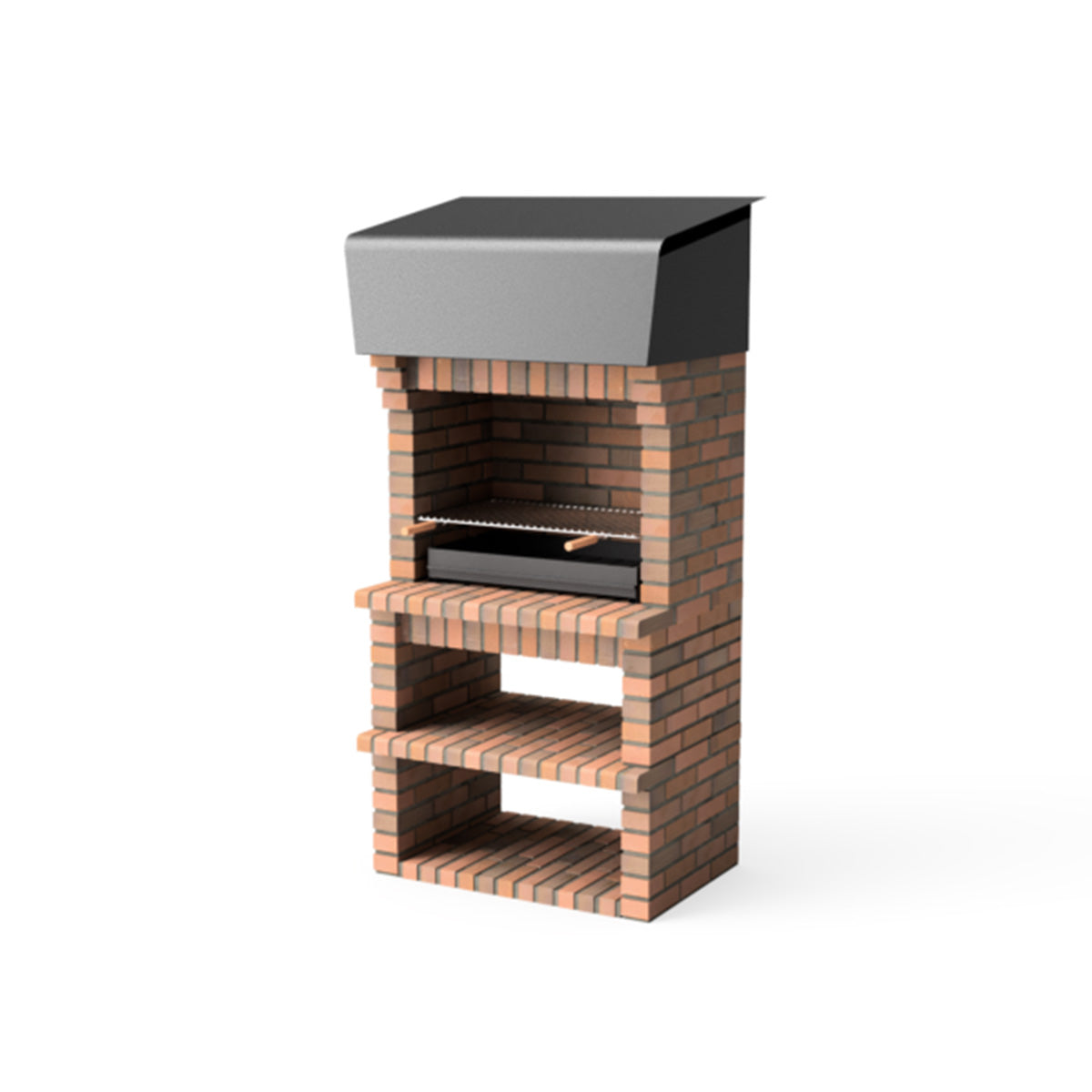 Barbacoa de hormigón refractario y ladrillo marrón. Parrilla de acero inoxidable 76,5 x 44 cm. Rejilla metálica de 70 x 40 cm y cajón para limpieza
