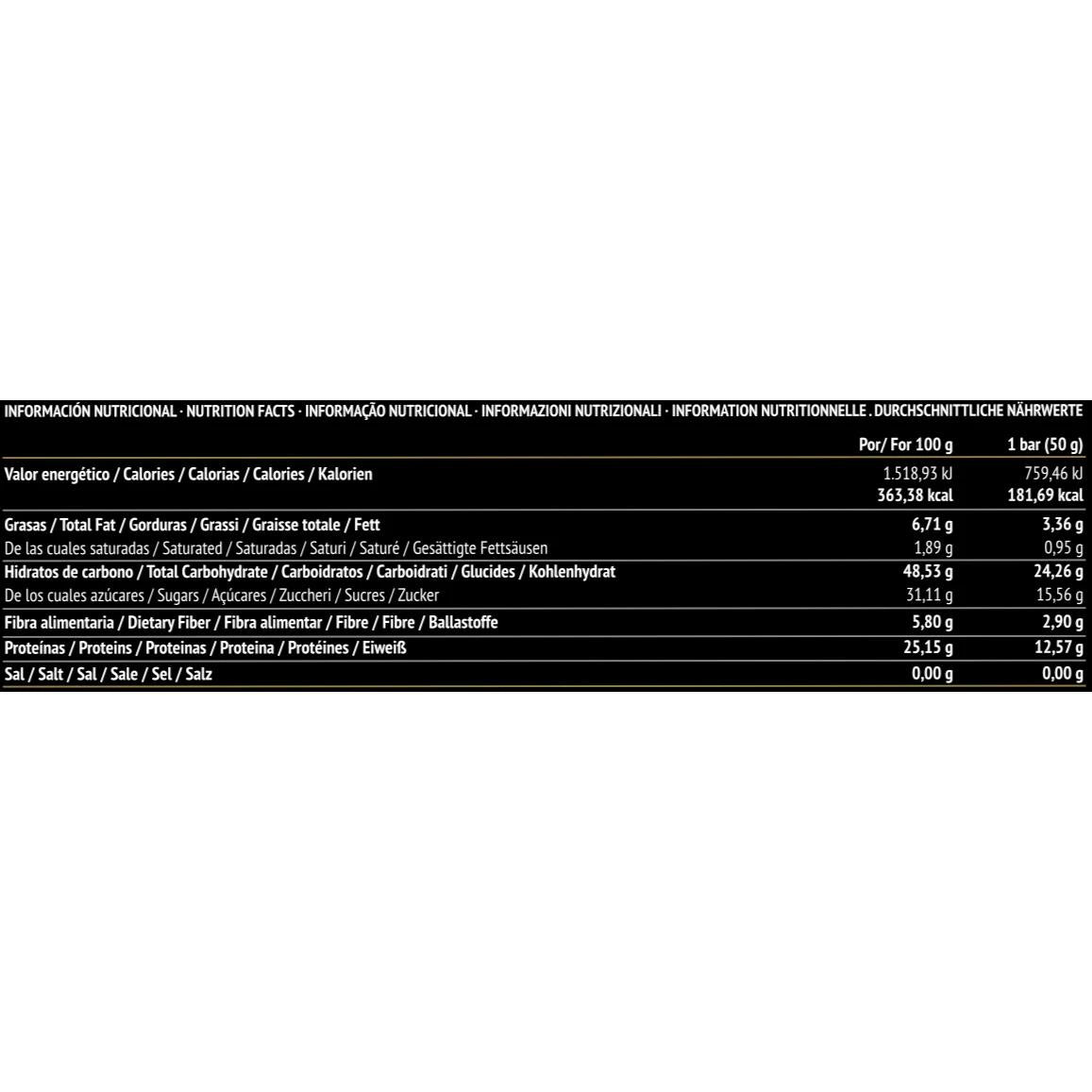 Información nutricional (por barrita de 50 g)