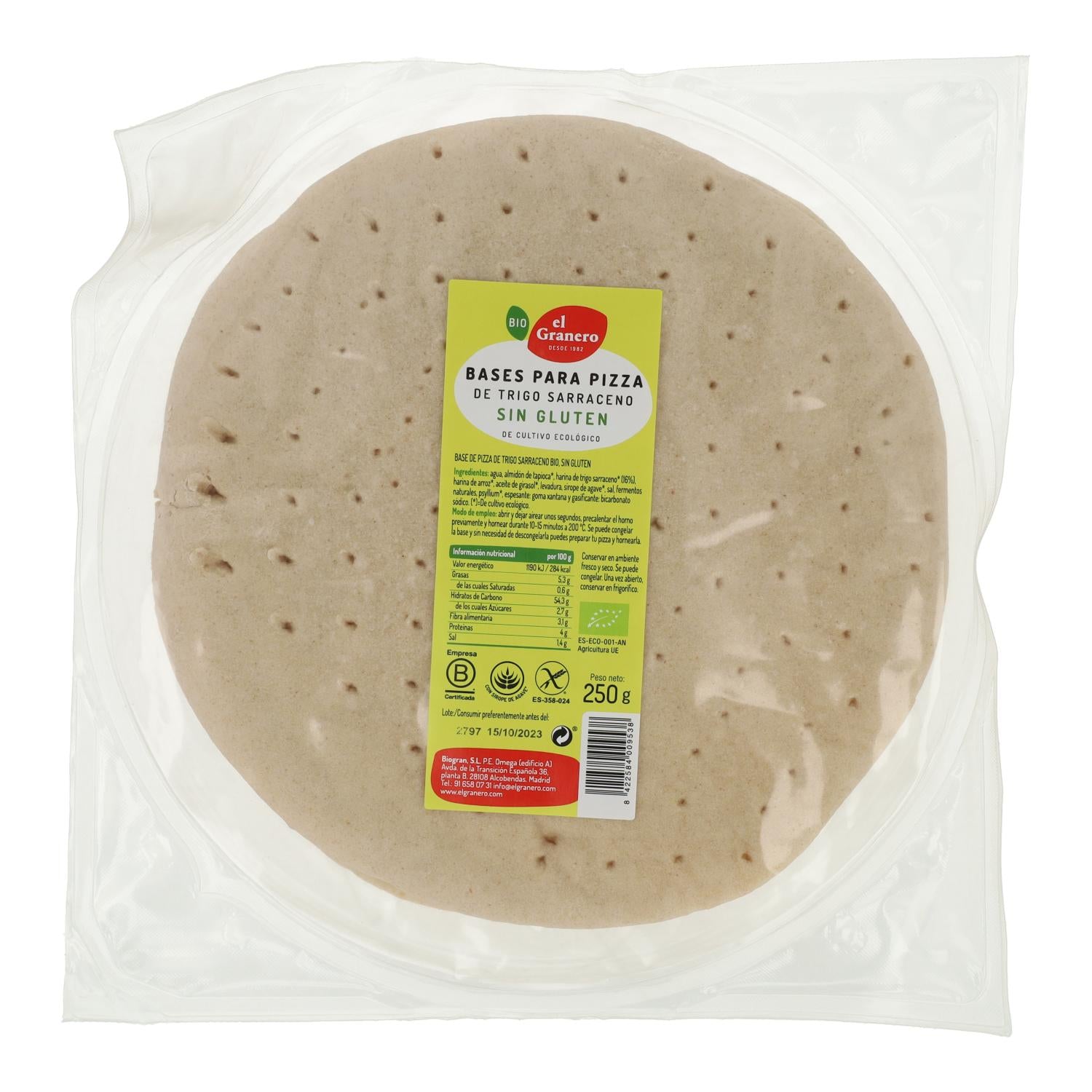 - 1 base de pizza con trigo sarraceno sin gluten BIO El Granero