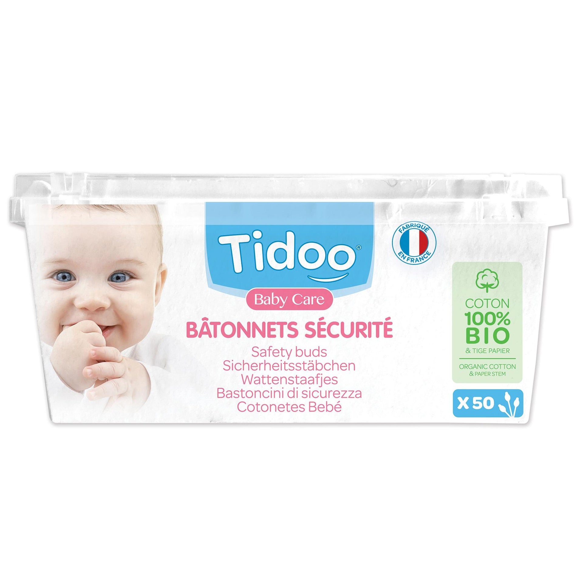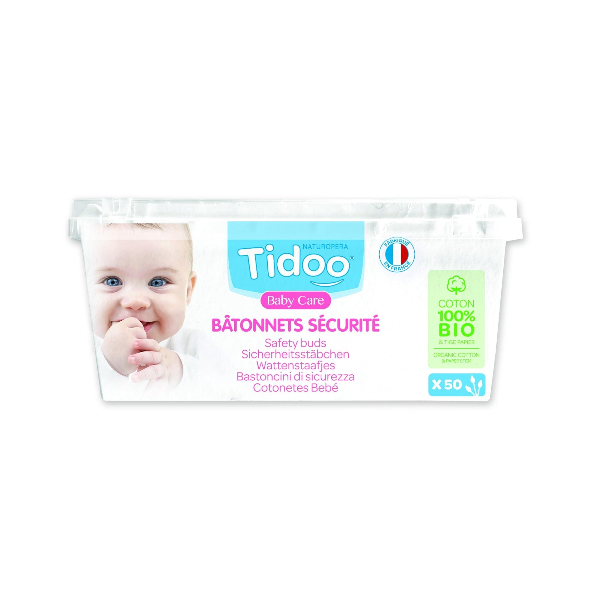 Toda la información sobre "Bastoncillos de Seguridad Algodón Biológico Ultra Suaves Tidoo 50 bastoncillos"