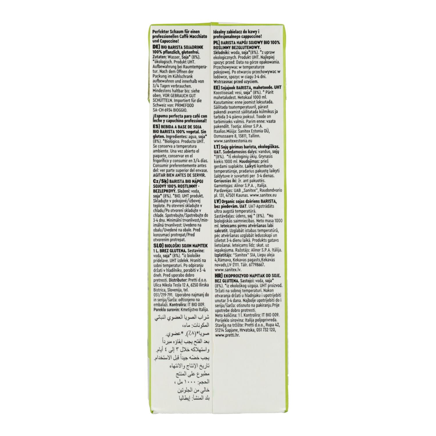 Toda la información sobre "Bebida de Soja Barista sin gluten BIO Vitariz 1 L"