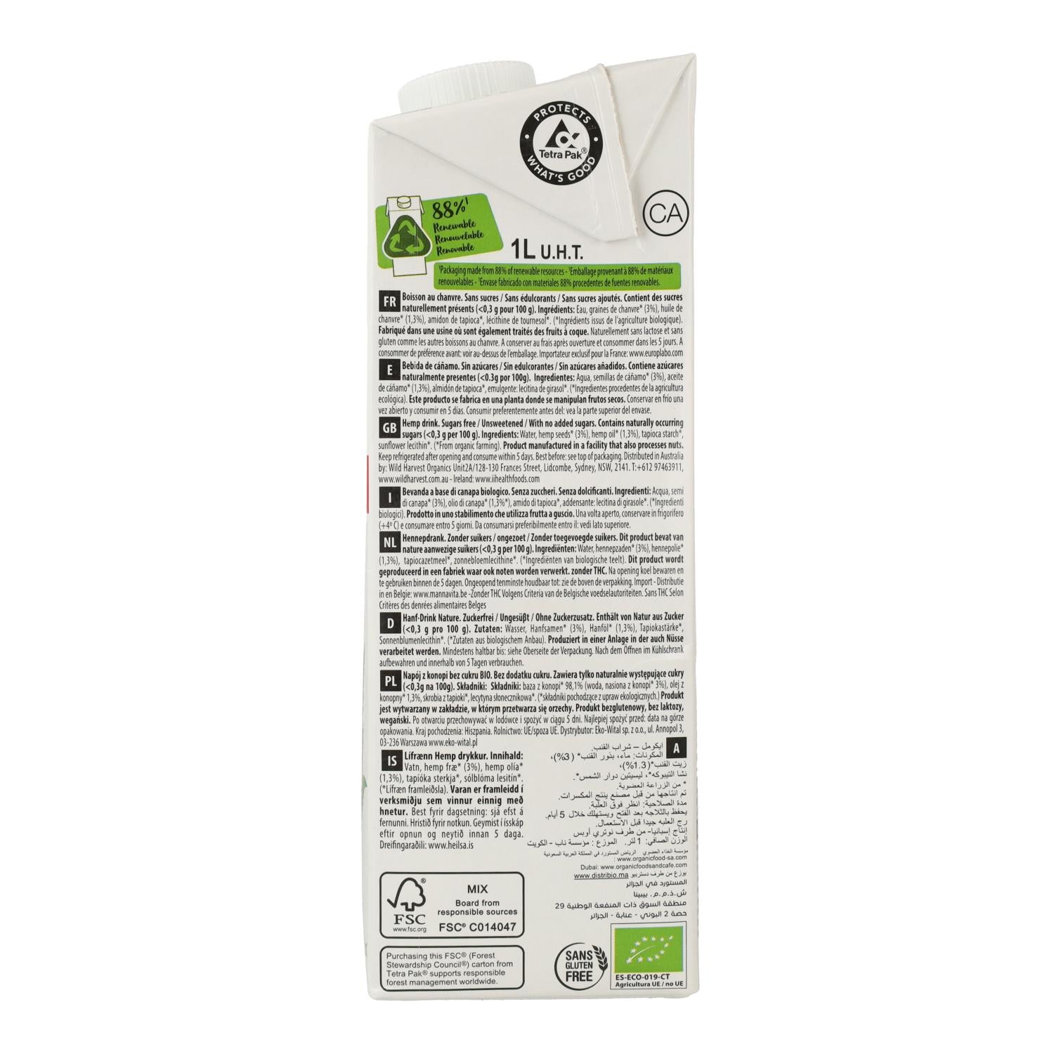 Toda la información sobre "Bebida vegetal de Cáñamo sin azúcar bio Ecomil 1L"