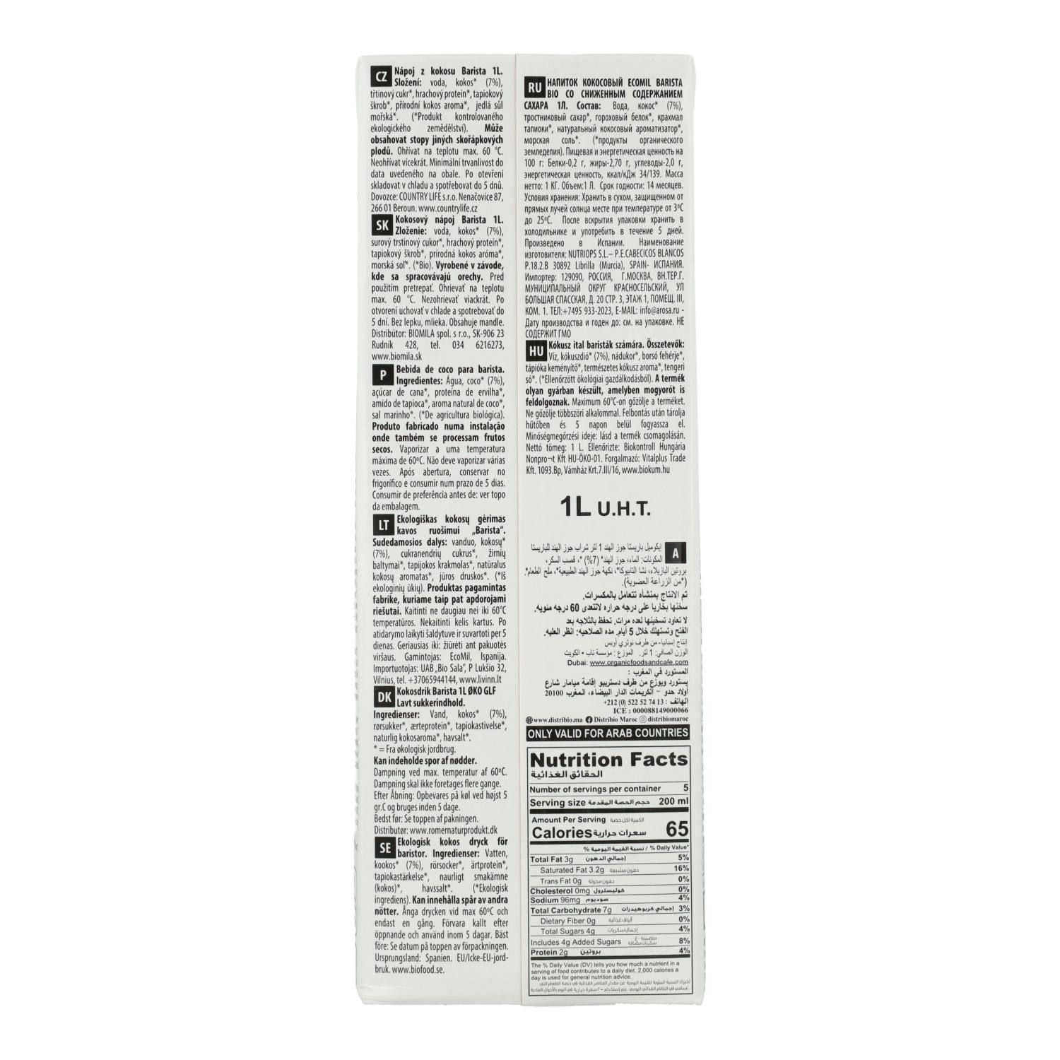Toda la información sobre "Bebida vegetal de Coco Barista BIO EcoMil 1L"