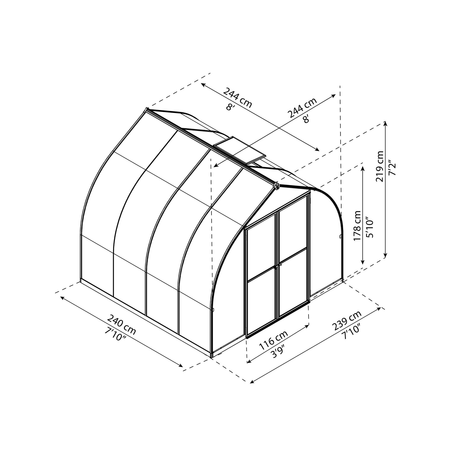 | Bella es un hermoso y práctico invernadero de 2,44 m de ancho que cuenta con paneles de policarbonato de pared doble, virtualmente irrompibles, creando la combinación ideal de difusión de la luz solar, aislamiento térmico y seguridad para todas sus necesidades de jardinería. El invernadero en forma de campana fue diseñado específicamente para mejorar la resistencia al viento y permitir que la nieve se deslice fácilmente.