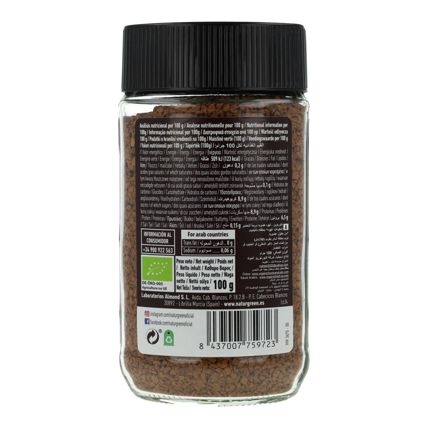 Toda la información sobre "Biocofee Café Soluble Ecológico Naturgreen 100 g"