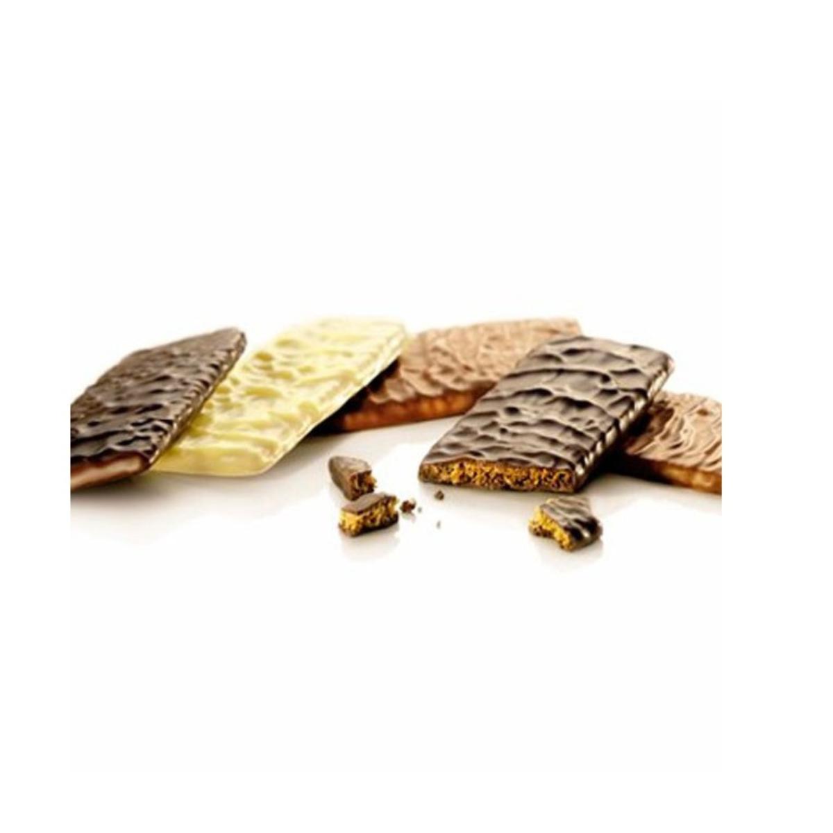 La marca Jules Destrooper es conocida por su artesanía impecable y su dedicación a la calidad, y estos biscuits no son una excepción. Confeccionados con precisión y con ingredientes de primera calidad, estos biscuits son una manifestación del compromiso de la marca con la excelencia en la repostería. Cada biscuit de azúcar cande es horneado hasta lograr una textura crujiente y delicada que se combina perfectamente con los tres tipos de chocolate, creando una experiencia sensorial que es verdaderamente irresistible.