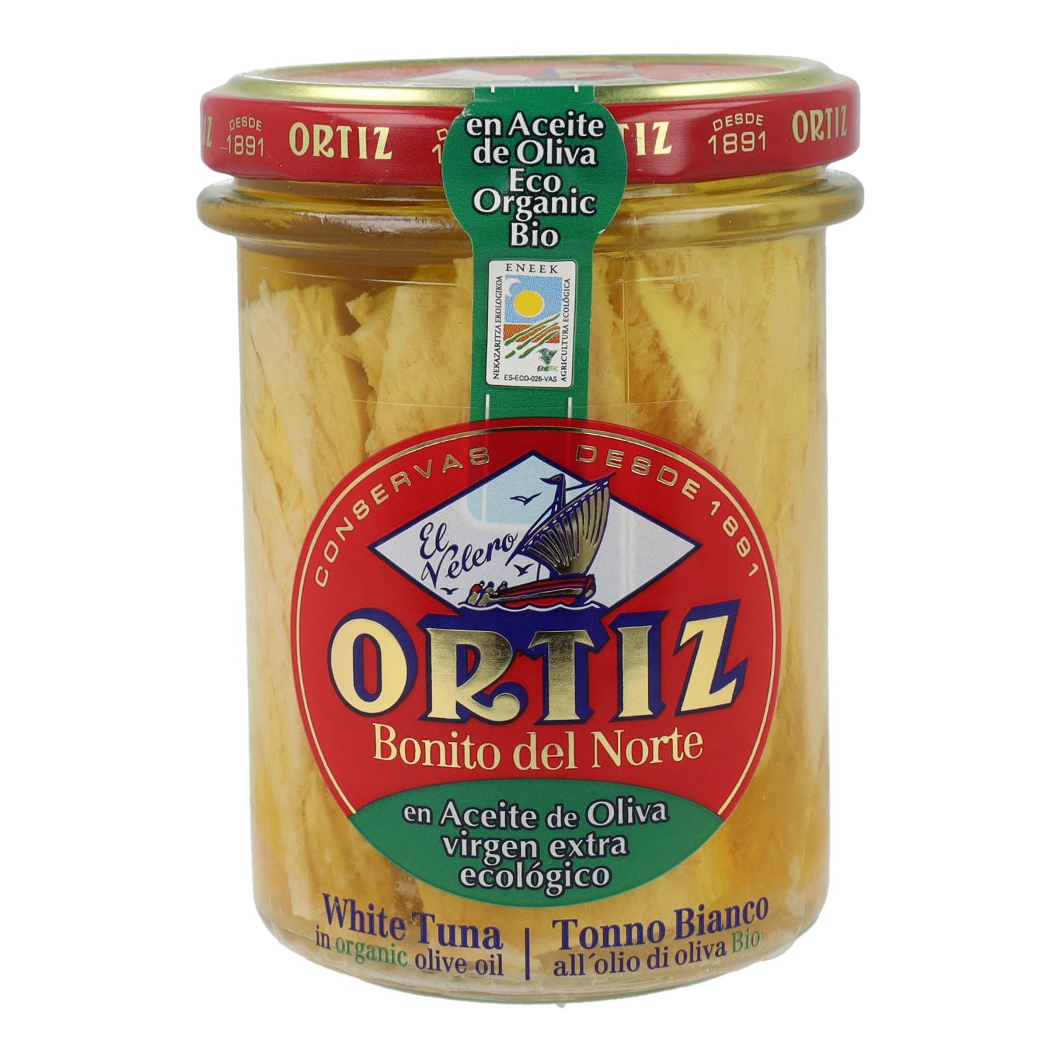 Toda la información sobre "Bonito del Norte en conserva ECO Ortiz 220g en tarro."