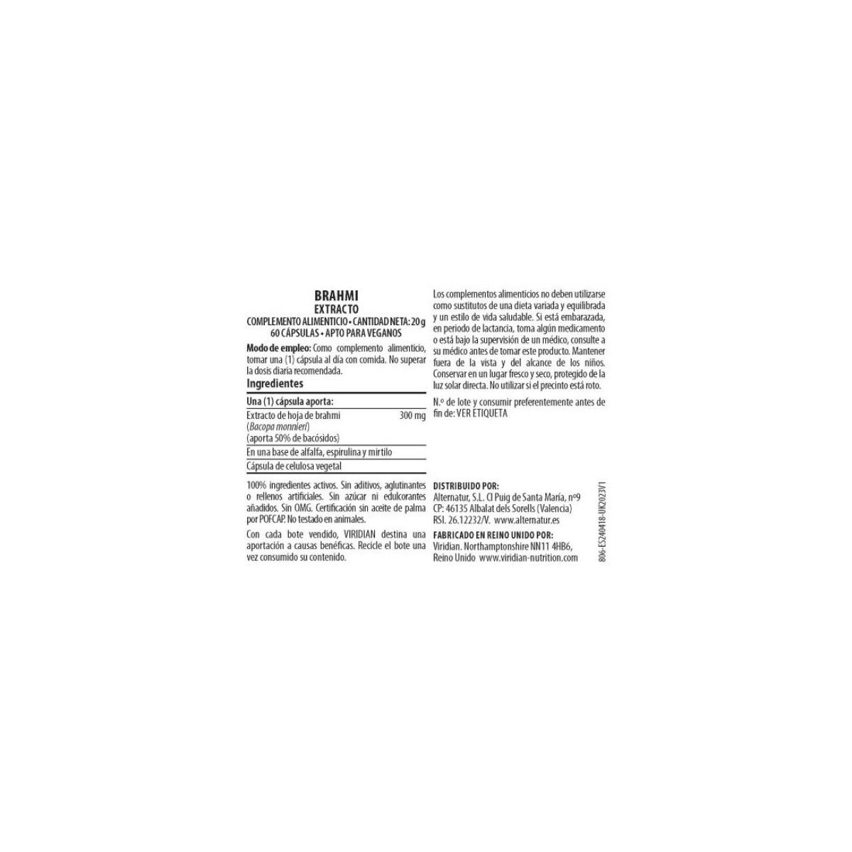 Toda la información sobre "Brahmi extracto Viridian 60 cápsulas"