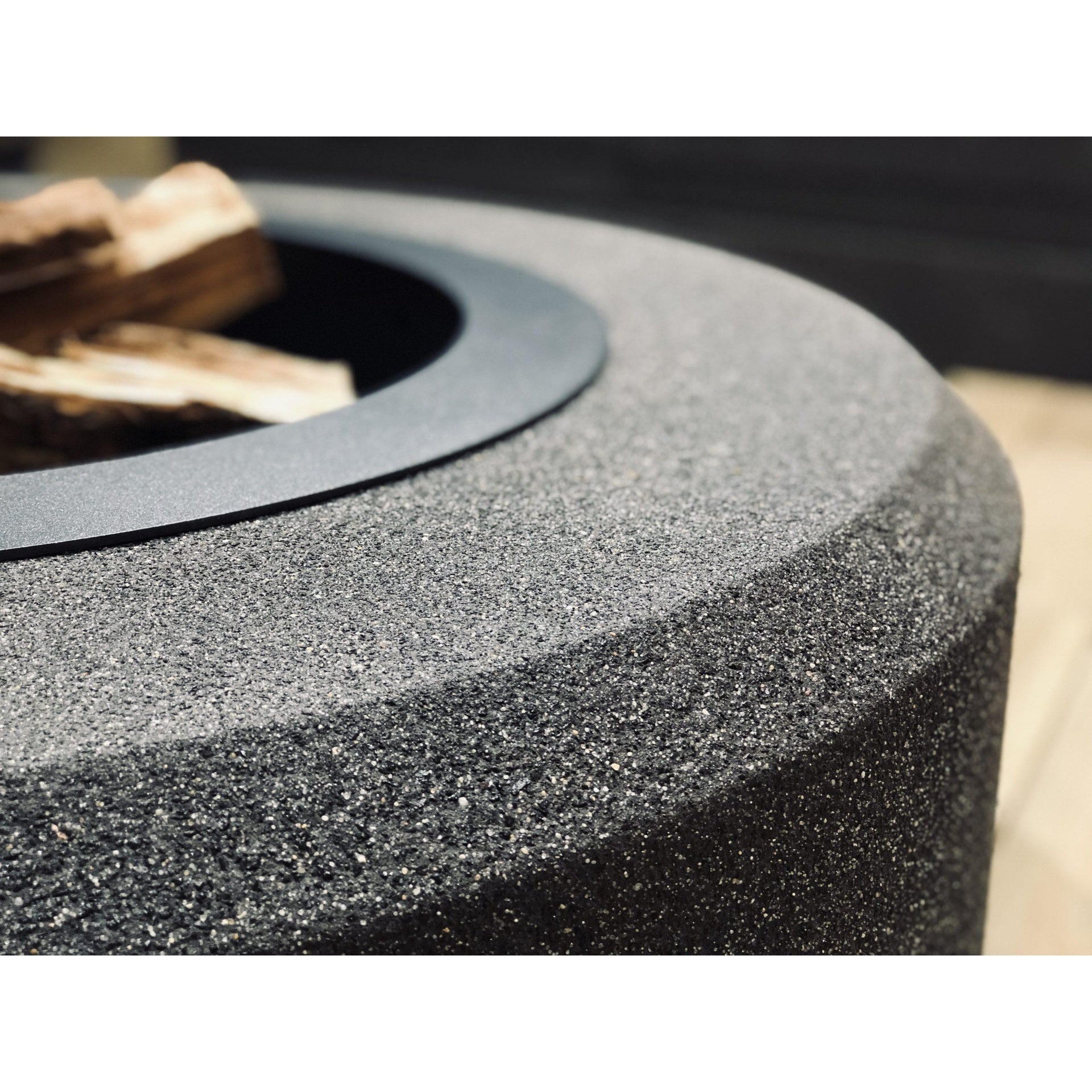 • Brasero exterior fabricado en hormigón liso o con textura. Acero con revestimiento en polvo resistente al calor.