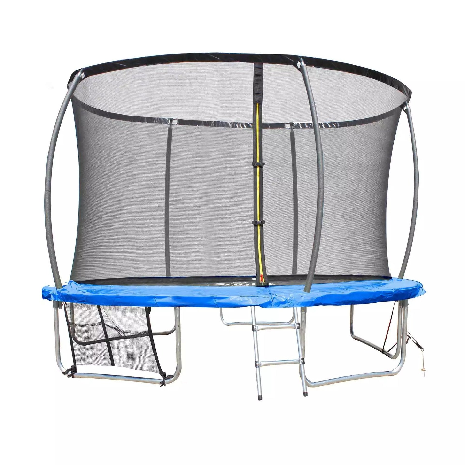 Para proteger su cama elástica de la humedad le recomendamos cubrirla con la lona protectora incluida o desmontarla y guardarla en un lugar seco si planea un largEntregada con todos sus accesorios, esta cama elástica de jardín de 3,66 m de diámetro y 2,60 m de altura total, está equipada con una red protectora, un cojín acolchado, una escalera, un kit de anclaje, una red para zapatos y una lona protectora.