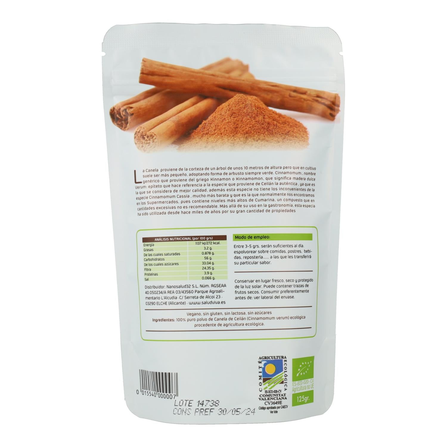 Toda la información sobre "Canela de Ceylan en polvo 125 g, Salud Viva"