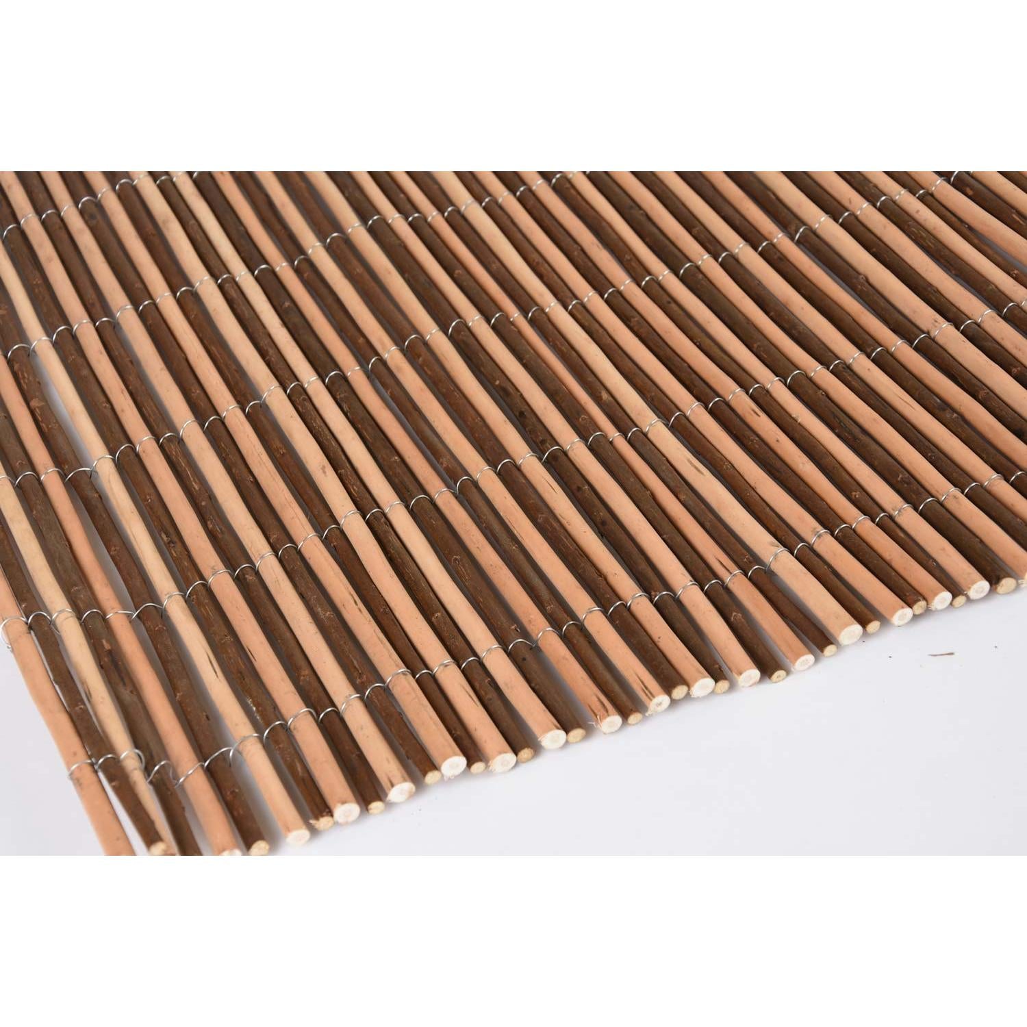 - Varillas Enteras de Mimbre natural lo que logra una elegante composición y una estética excepcional en ocultación natural. Cosido con alambre galvanizado a cada 10 cm de distancia entre alambres.