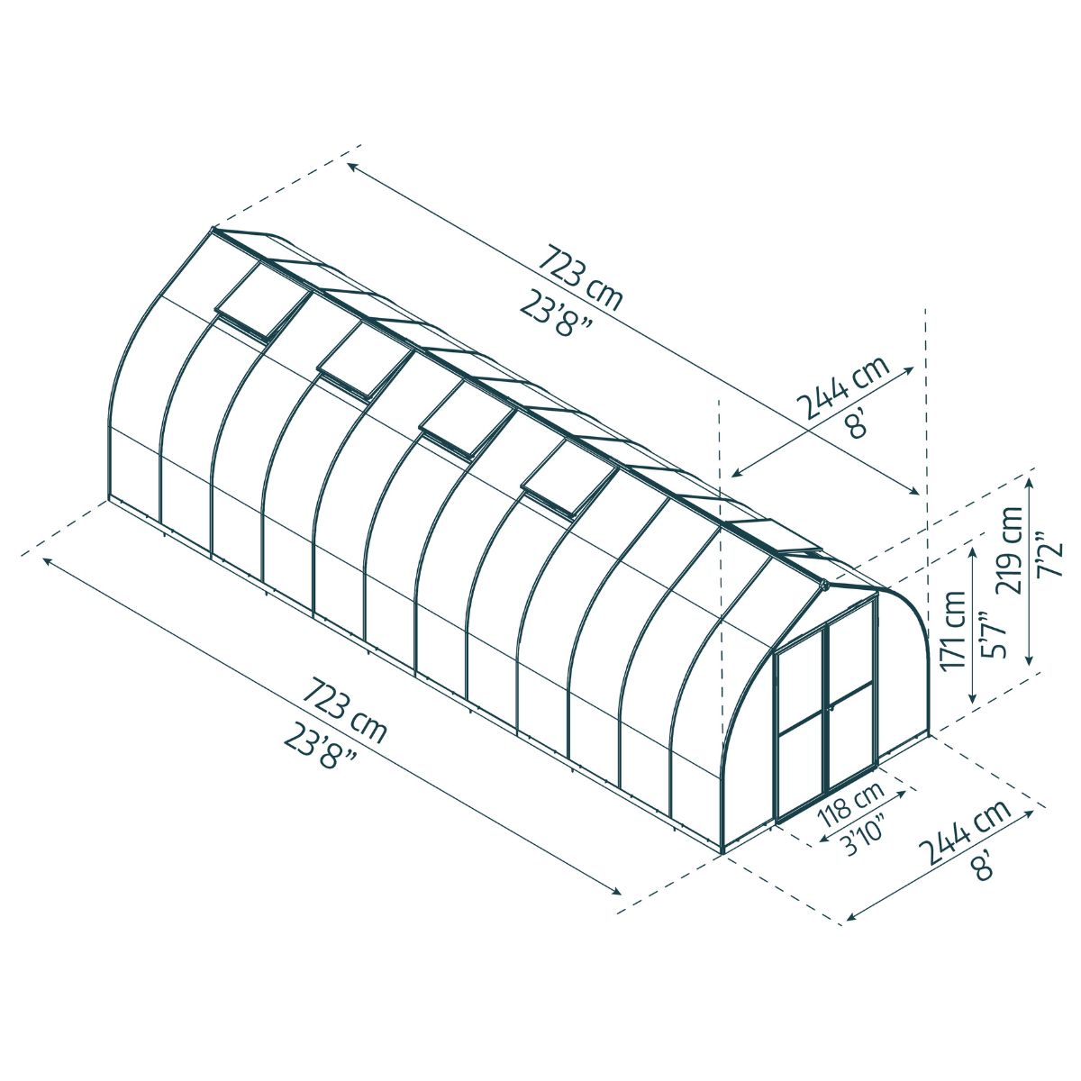 Canopia Bella Invernadero De Jardín Policarbonato 724X244X219 cm Plata Difusa