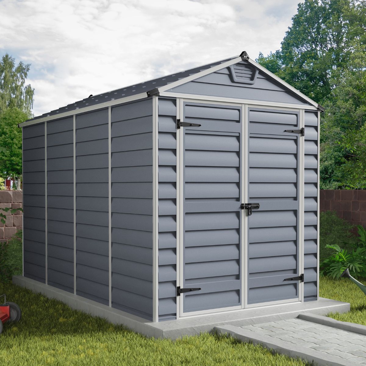 La caseta de jardín Canopia 303X185X217 cm es una solución compacta, resistente y sin mantenimiento para el almacenamiento de herramientas, equipos de jardín, bicicletas o productos de exterior. Está fabricada con paneles de policarbonato prácticamente irrompibles y estructura de aluminio resistente a la corrosión. El techo Skylight exclusivo permite el paso de luz natural manteniendo la privacidad desde el exterior. Su diseño sobrio y funcional es ideal para cualquier espacio exterior.