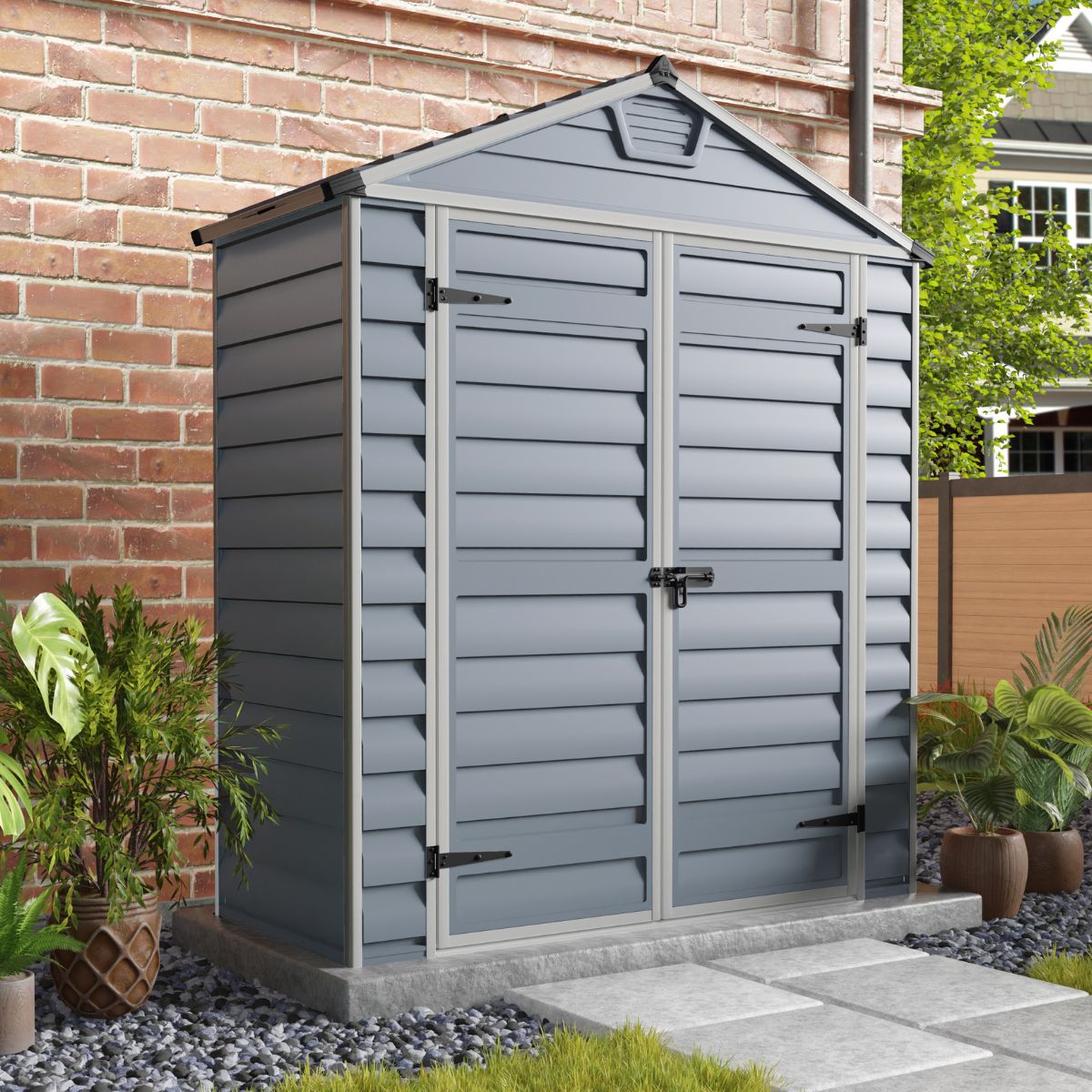La caseta de jardín Canopia 90X185X217 cm es una solución compacta, resistente y sin mantenimiento para el almacenamiento de herramientas, equipos de jardín, bicicletas o productos de exterior. Está fabricada con paneles de policarbonato prácticamente irrompibles y estructura de aluminio resistente a la corrosión. El techo Skylight exclusivo permite el paso de luz natural manteniendo la privacidad desde el exterior. Su diseño sobrio y funcional es ideal para cualquier espacio exterior.