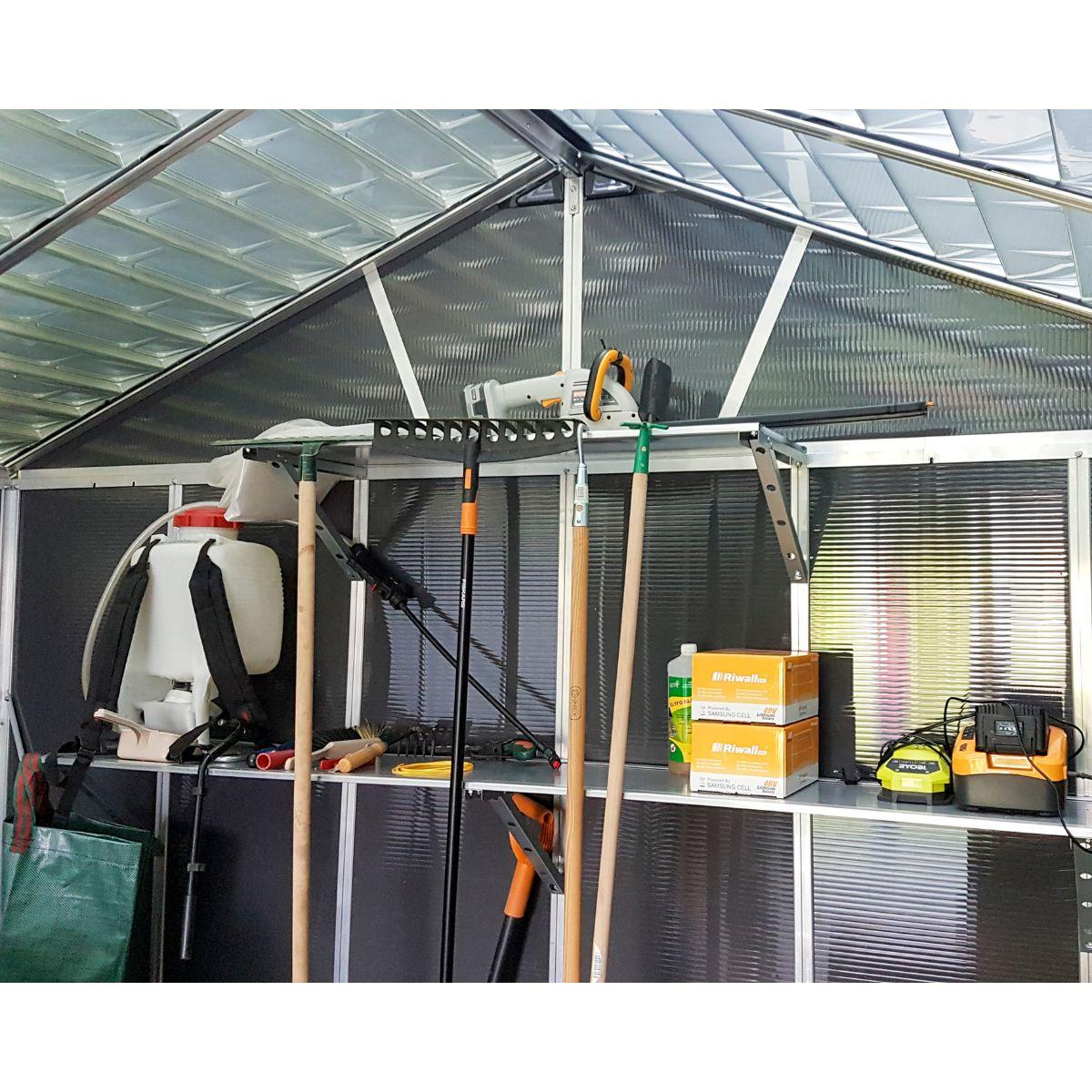Fácil y simple instalación de bricolaje con sistema de montaje de paneles deslizantes El cobertizo se puede anclar a superficies sólidas como madera, hormigón o metal. Se requiere fundación. (No incluido)