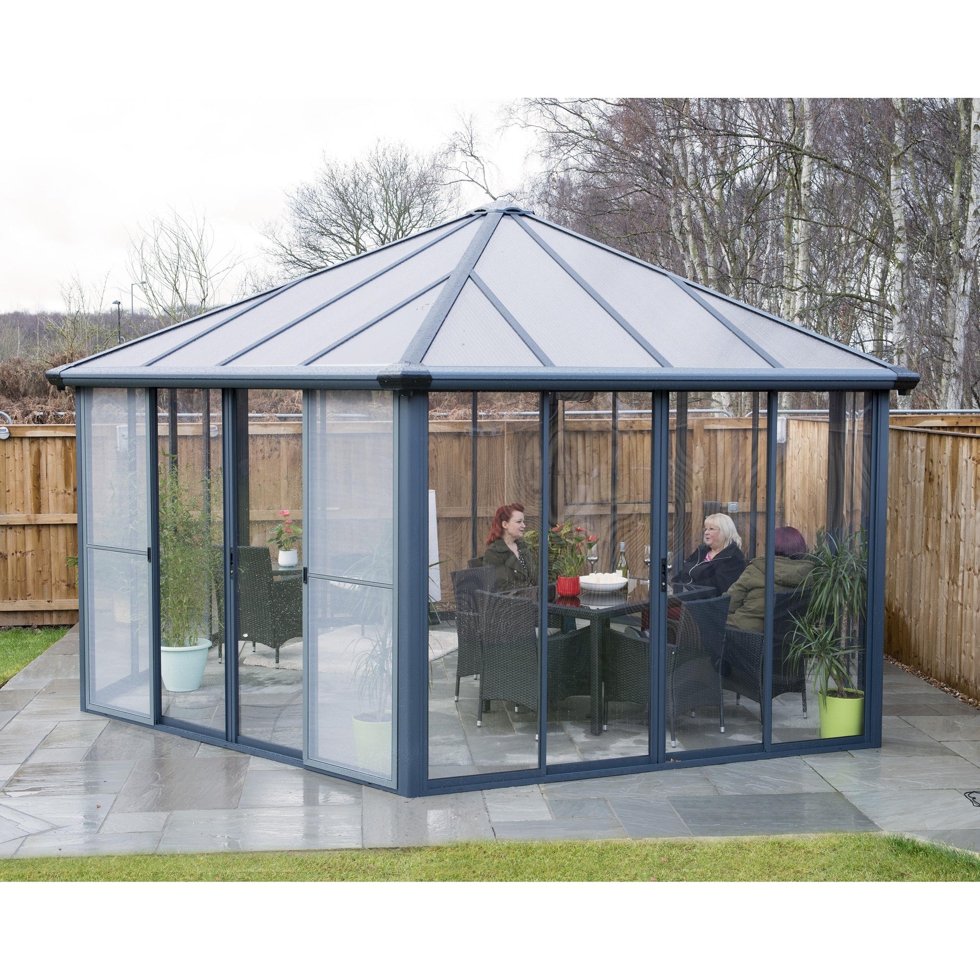 La Garda le ofrece un espacio extragrande ideal para aprovechar el aire libre desde la seguridad del interior. Esta maravillosa y espaciosa habitación separada al aire libre está diseñada para ser disfrutada en todas las estaciones; permitiéndole pasar más tiempo relajándose, disfrutando de su jardín o deleitándose en un spa privado a voluntad. • Estructura resistente a todo clima, muy duradera, resistente a la oxidación y extra rígida
