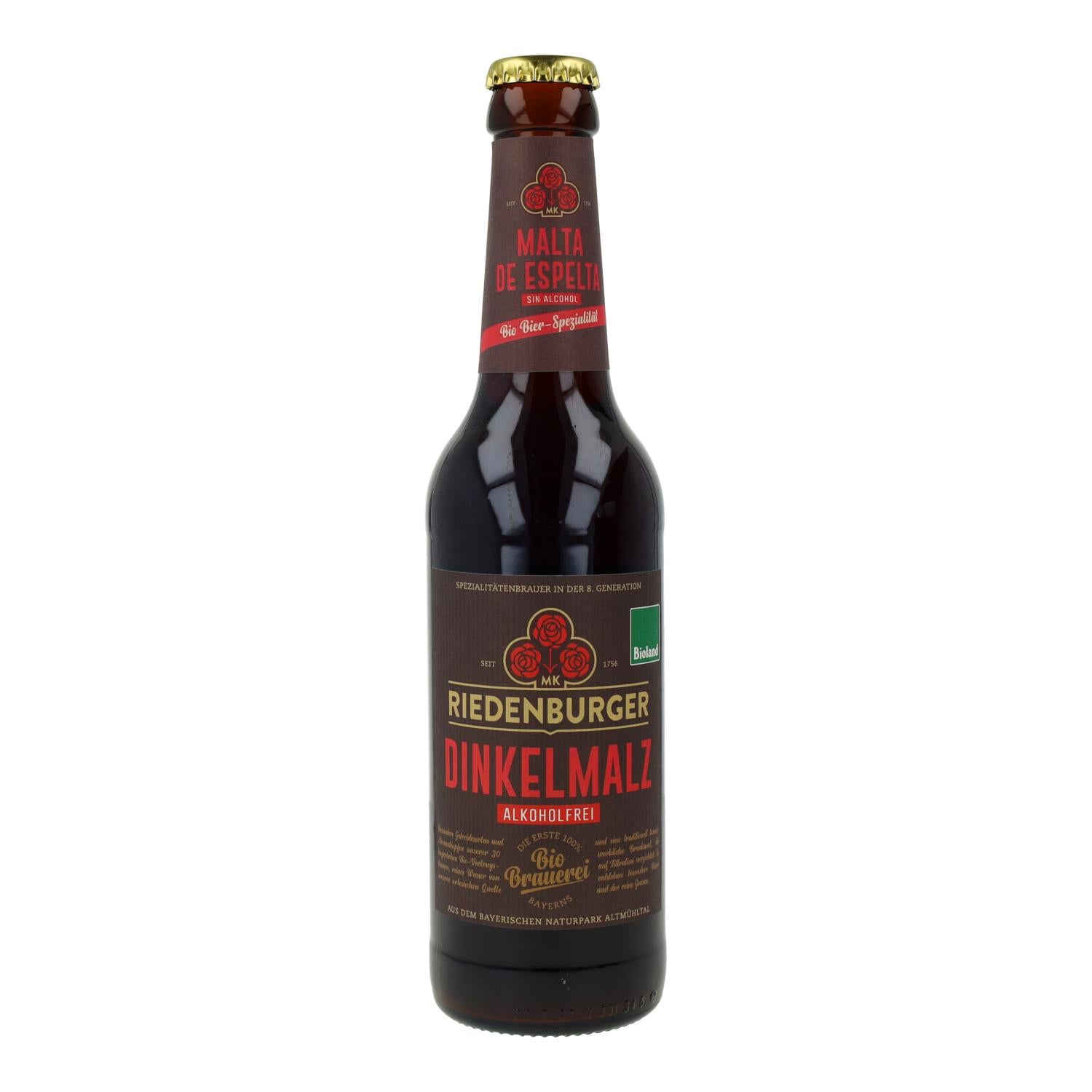 Cerveza Malta de Trigo de Espelta sin alcohol bio Riedenburger 33cl