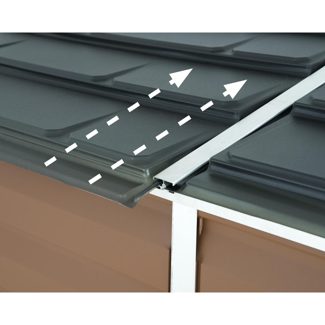 La caseta SkyLight es perfecta para almacenar, organizar y proteger lo que usa para su vida al aire libre. Fabricada con el policarbonato de Palram - Canopia |, prácticamente irrompible y reforzada con una estructura de aluminio, la caseta SkyLight le ofrecerá años de protección, sin necesidad de recibir mantenimiento. Al principio le sorprenderán la flexibilidad y el espesor de los paneles de policarbonato, pero tenga la seguridad de que, una vez armada, la caseta es rígida y duradera. El policarbonato único de los paneles del techo de la SkyLight deja pasar la luz natural durante el día y al mismo tiempo, su opacidad hacia el exterior permite el máximo de privacidad. Se incluyen respiraderos en el frente y la parte posterior para contar con abundante flujo de aire. Las casetas SkyLight Palram - Canopia | no se rompen, doblan o decoloran, resistiendo condiciones climáticas severas como granizo y temperaturas altas. La caseta SkyLight está diseñada teniendo en cuenta su espacio al aire libre, complementa su casa y mejora las áreas abiertas de su residencia, para su disfrute.