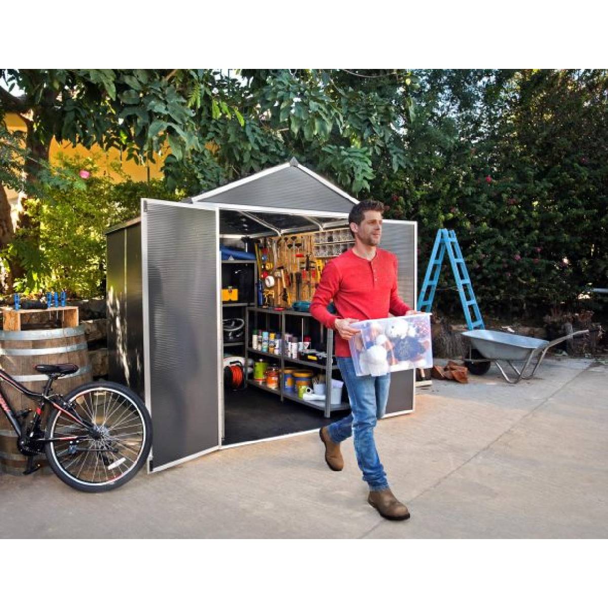 - 100% libre de mantenimiento. Kits de cobertizo fáciles de instalar con sistema de ensamblaje de paneles deslizantes.
