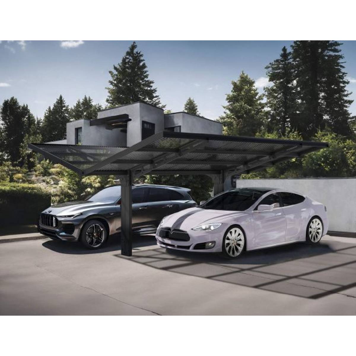 El Doble Cochera Sydney Apex te brinda la libertad de estacionar dos vehículos con mucho espacio adicional. Ideal para áreas de giro o estaciones de carga para automóviles. Este versátil kit de cochera doble cuenta con paneles que transmiten luz solar mientras proporcionan protección UV y una sombra adecuada, lo que permite que funcione como una cochera doble, una cubierta para patio o un área de salón exterior cubierto.