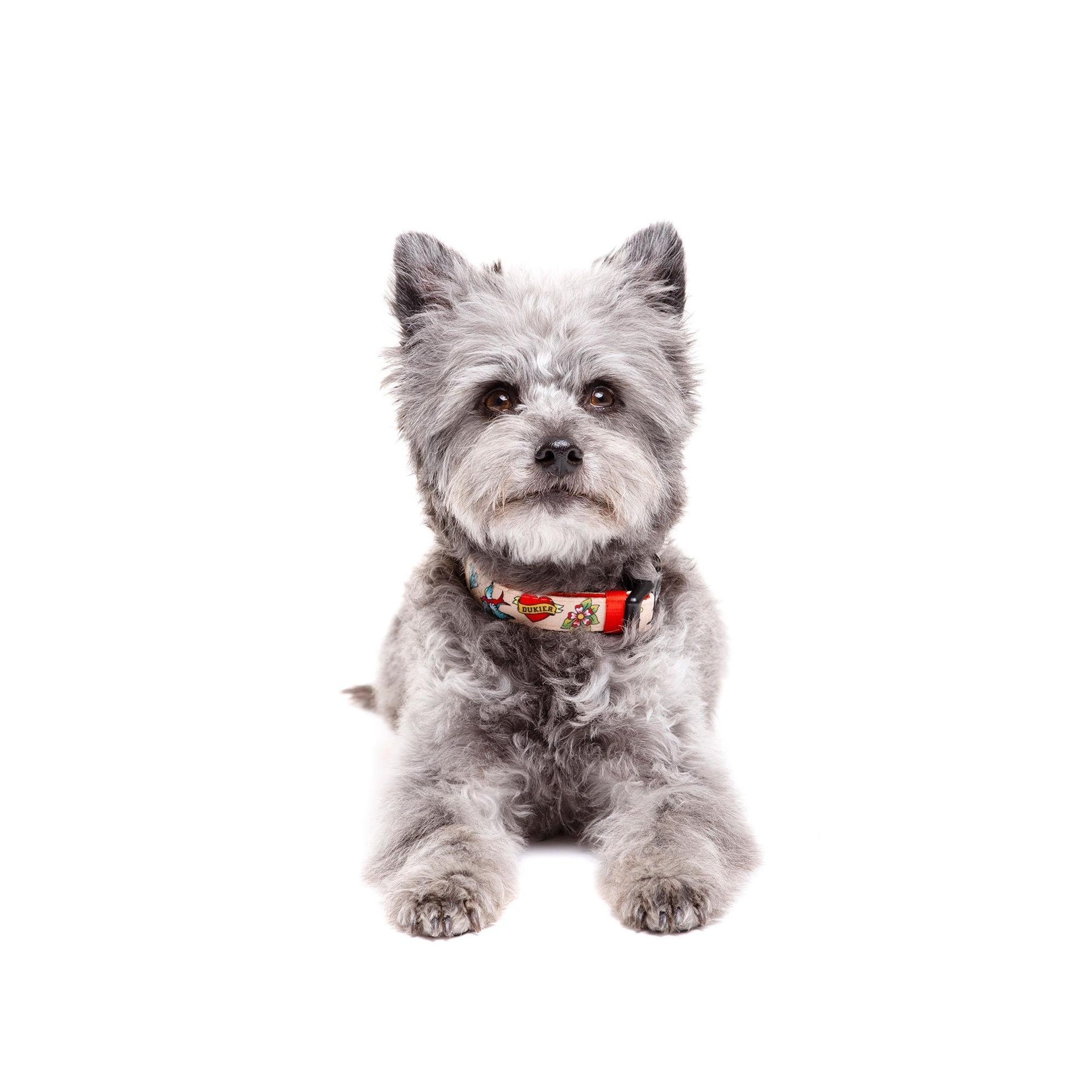 Old school en una nueva era. ¿Quién dice que los peluditos no pueden llevar tatuajes? Con este nuevo modelito les damos la oportunidad de llevarlos y que también sean los más molones de la calle. Además, los tattoo nunca pasan de moda. Diseñado para que tu perro no se lo quiera quitar nunca jamás. El tejido de neopreno súper blandito que tiene el collar en la parte interior previene de cualquier molestia a tu perro. Te lo advertimos, quitárselo será una tarea muuuy difícil.