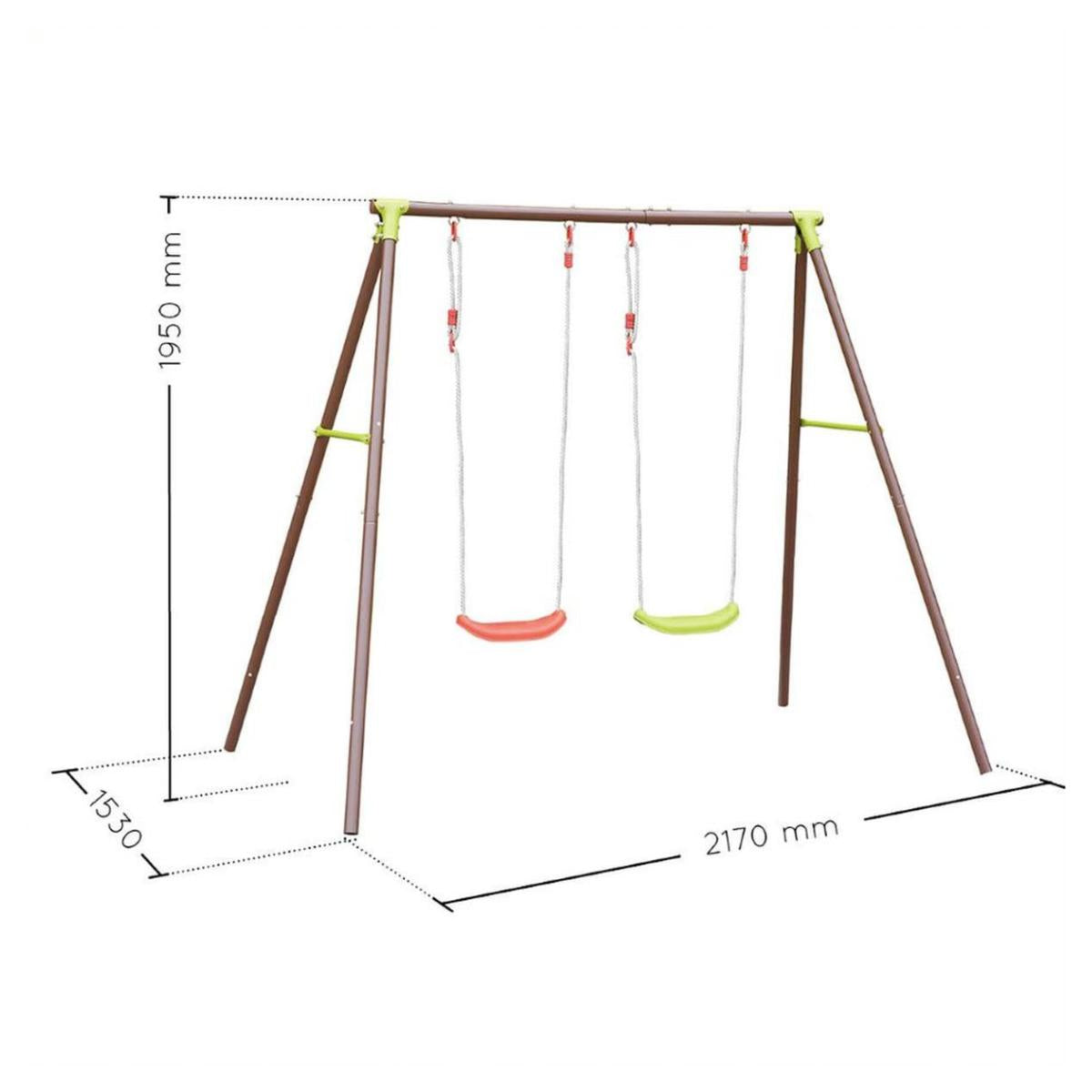 Debido a que la seguridad es esencial, este columpio de metal ha sido probado y certificado según los estándares de seguridad de los juguetes. ¡Con una altura de 1,95 m, este pórtico entregado en kit es fácil de instalar! Para momentos de juego seguros, se incluye un kit de sellado.
