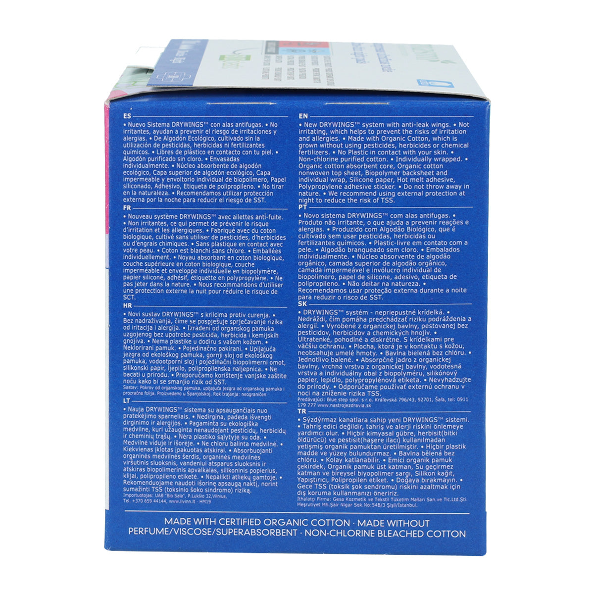 - Núcleo absorbente de 100% Puro Algodón Ecológico Certificado, no contiene residuos de pesticidas ni herbicidas.