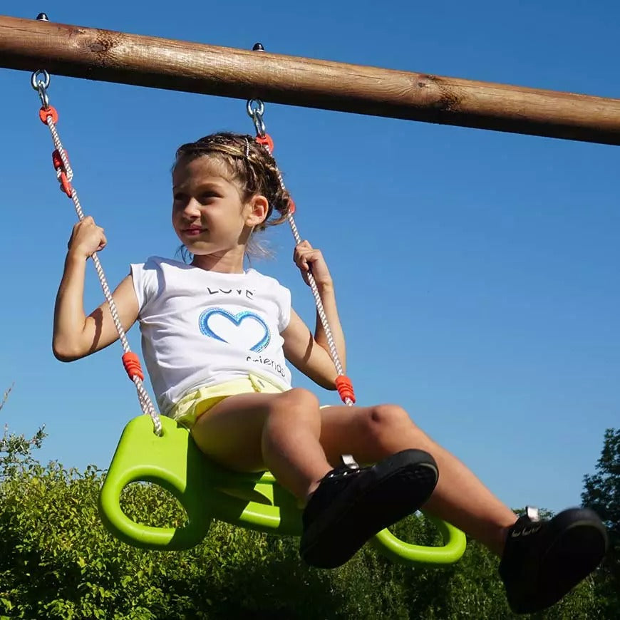 La seguridad de sus hijos es primordial. Es por ello que este accesorio para pórtico está certificado según las normas de seguridad de juegos infantiles. Está equipado con anillos de seguridad metálicas recubiertos de plástico que refuerzan su resistencia a cargas pesadas.