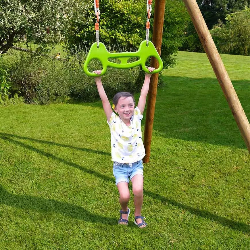 Los pequeños deportistas podrán darse el mayor de los gustos con este anillo-trapecio y pasarán largas horas al aire libre divirtiéndose y desahogándose libremente.