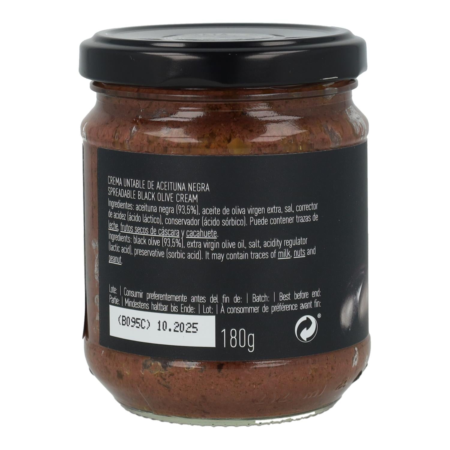 Esta crema tiene un sabor suave y tenue, dado su contenido en aceitunas negras, y es por tanto ideal para ensaladas, empanadas, arroces, pastas, vinagretas, pizzas o simplemente para untar.