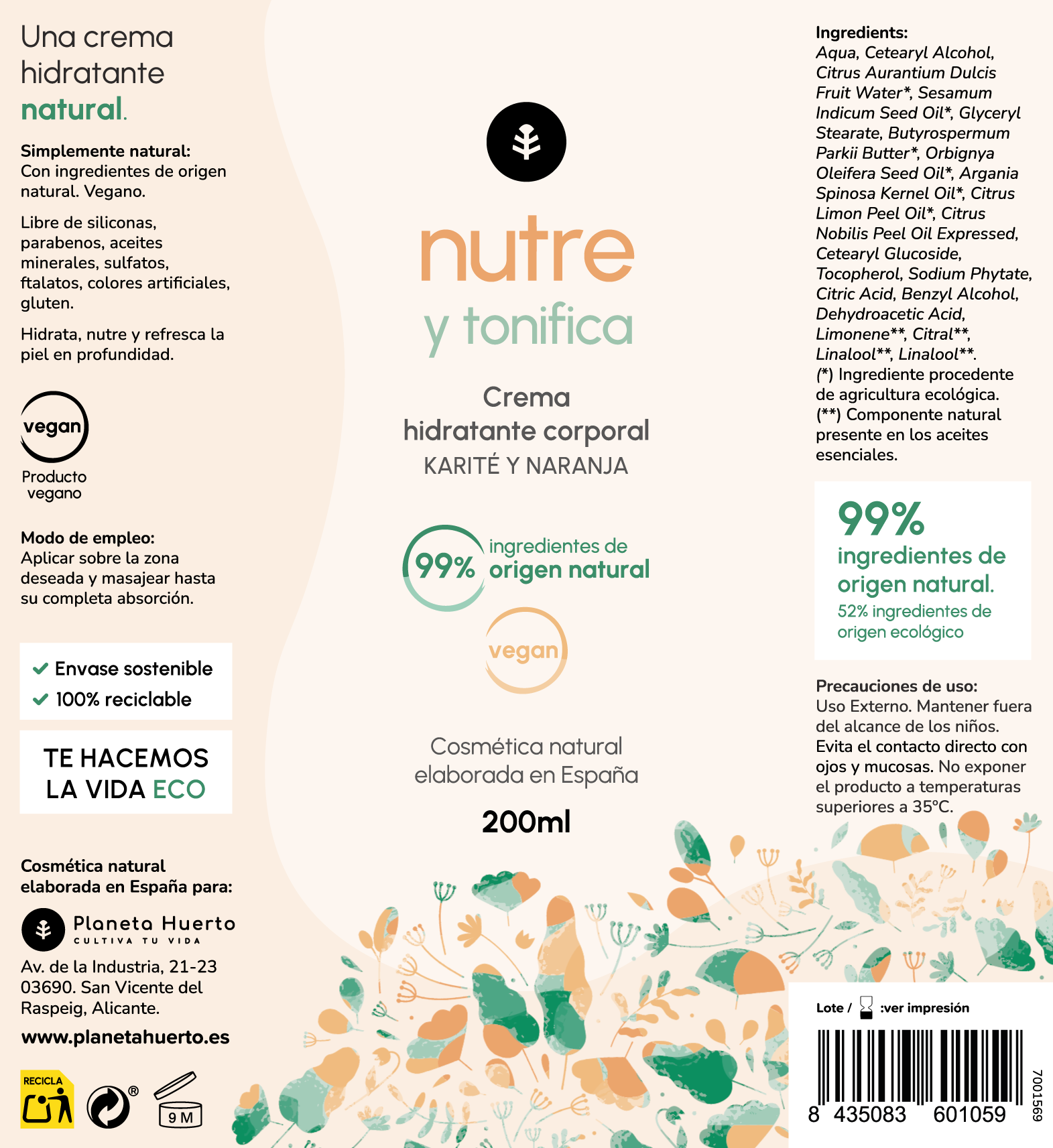 Toda la información sobre "Crema hidratante corporal Karité y Naranja Planeta Huerto 200 ml"