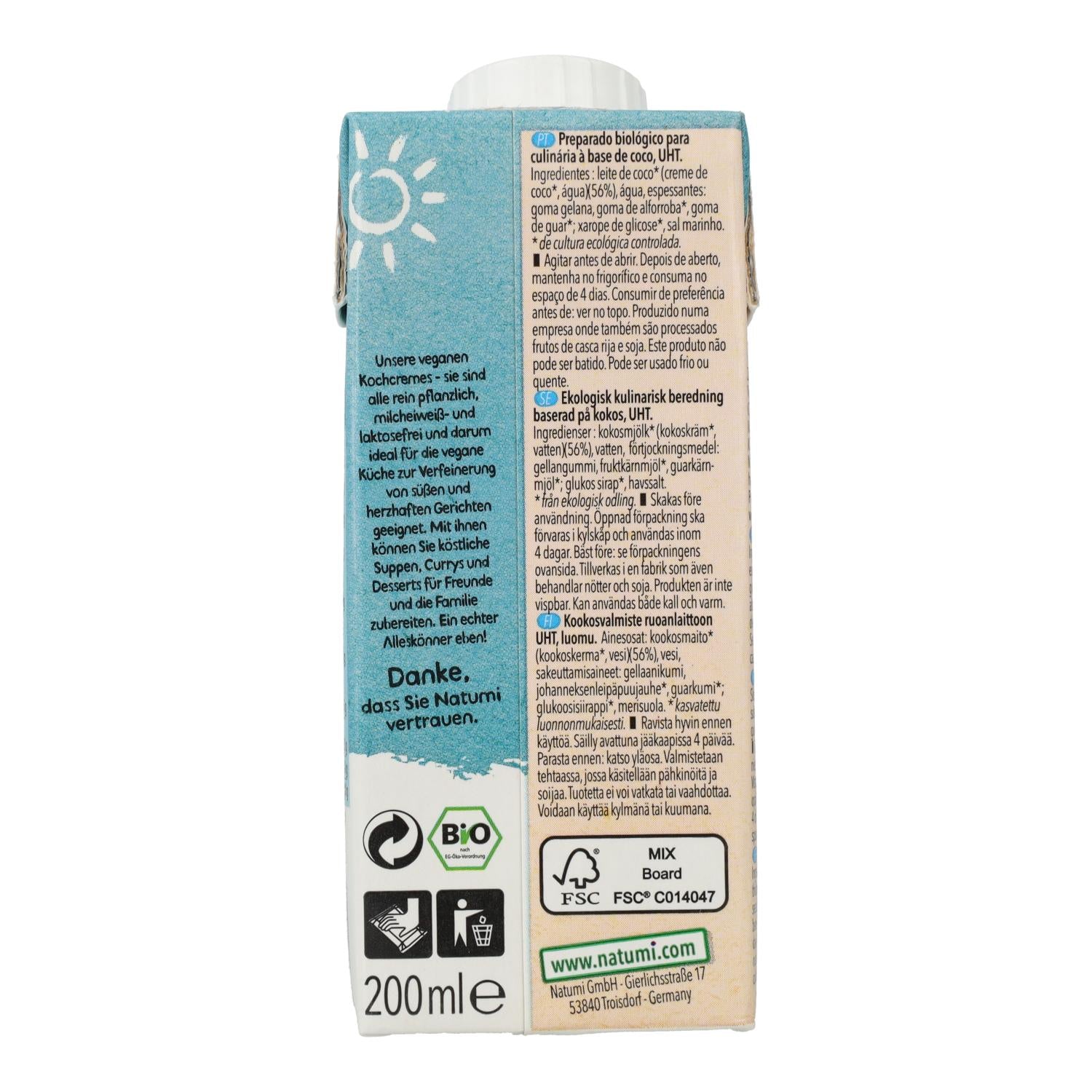 Toda la información sobre "Crema para Cocinar a base de Coco Natumi, 200 ml"