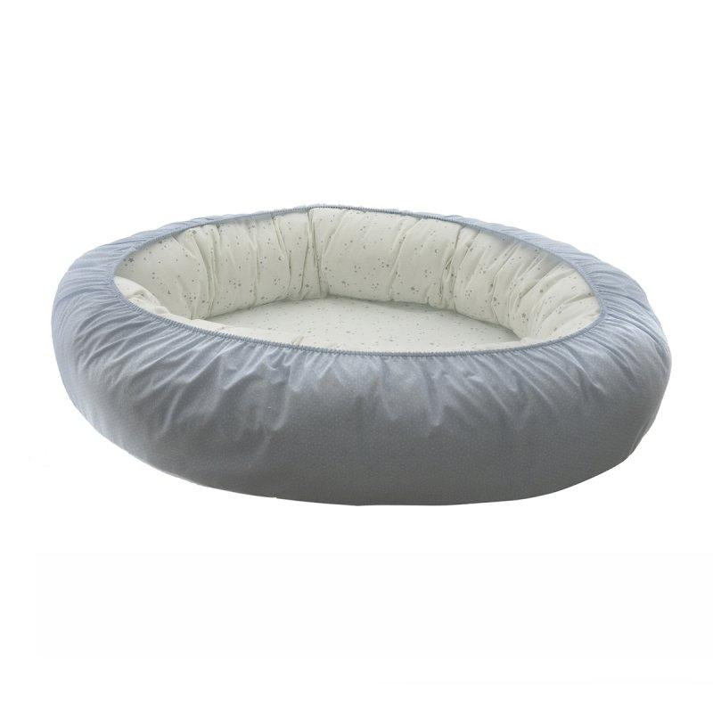 Muchos padres lo utilizan para cuando el bebé va a la cuna y de este modo esta más recogido y protegido. También se puede desmontar y la parte lateral (cojín) sirve como cojín de lactancia y la parte inferior como un cambiador para la casa. El cojín está relleno de fibras huecas para la máxima adaptación y la base, lleva una colchoneta plastificada para poder gastarlo luego como cambiador. Se puede lavar todo el textil en lavadora y secadora. MADE IN SPAIN.