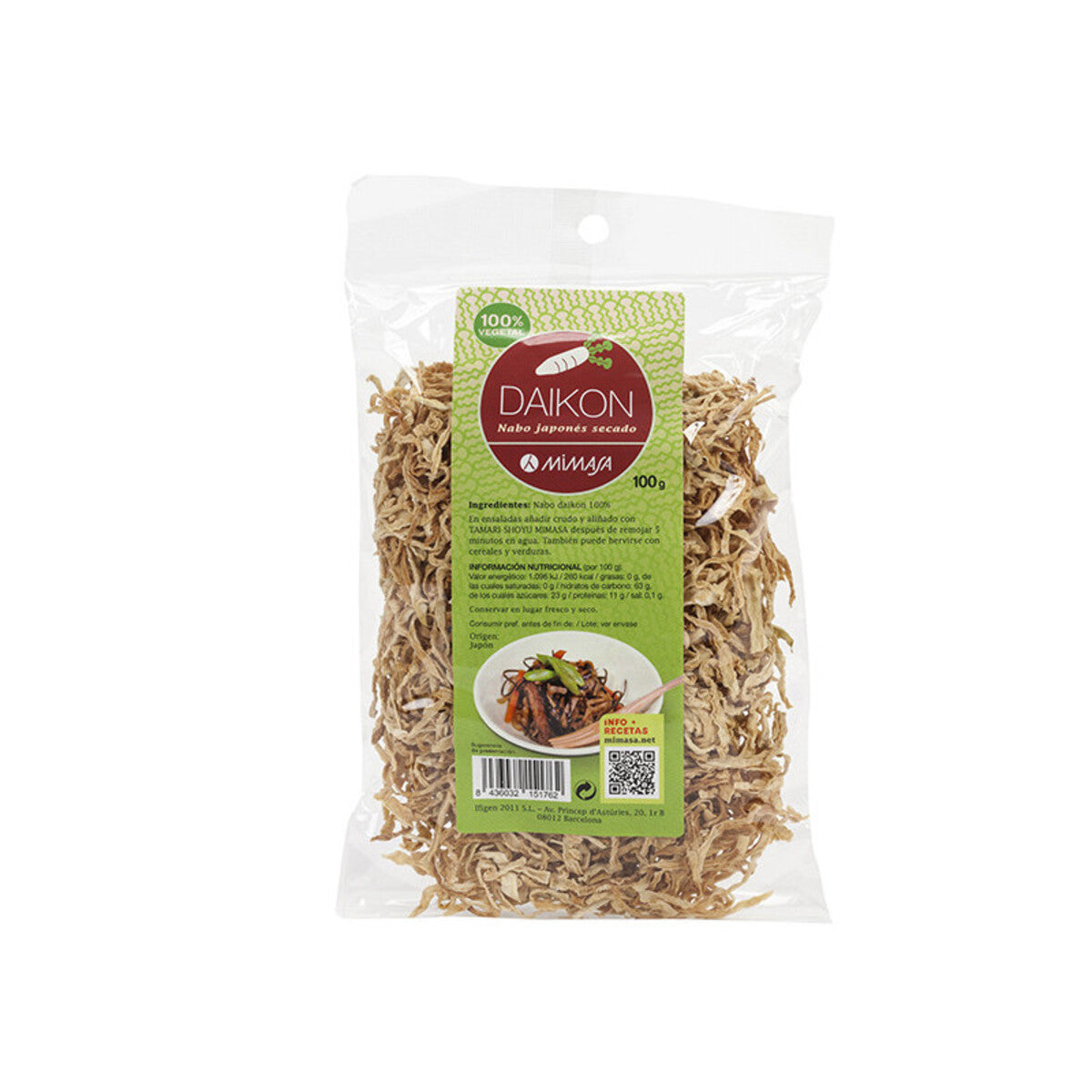 El daikon es un nabo blanco y largo. Su nombre proviene de la unión de las palabras japonesas “dai” (largo) y “kon” (raíz). Este vegetal se recolecta entre el invierno y la primavera, se corta en tiras y posteriormente se deja secar al sol durante tres días.