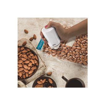 Mantén los alimentos frescos durante más tiempo. Funciona solo pulsando un botón. Incluye 5 bolsas Zip reutilizables Cable y carga USB Apto para distintos tipos de alimentos Pequeño, potente y fácil de almacenar Carga 5V= 1A (by USB) Polímero litio 3.7V = 1100mA