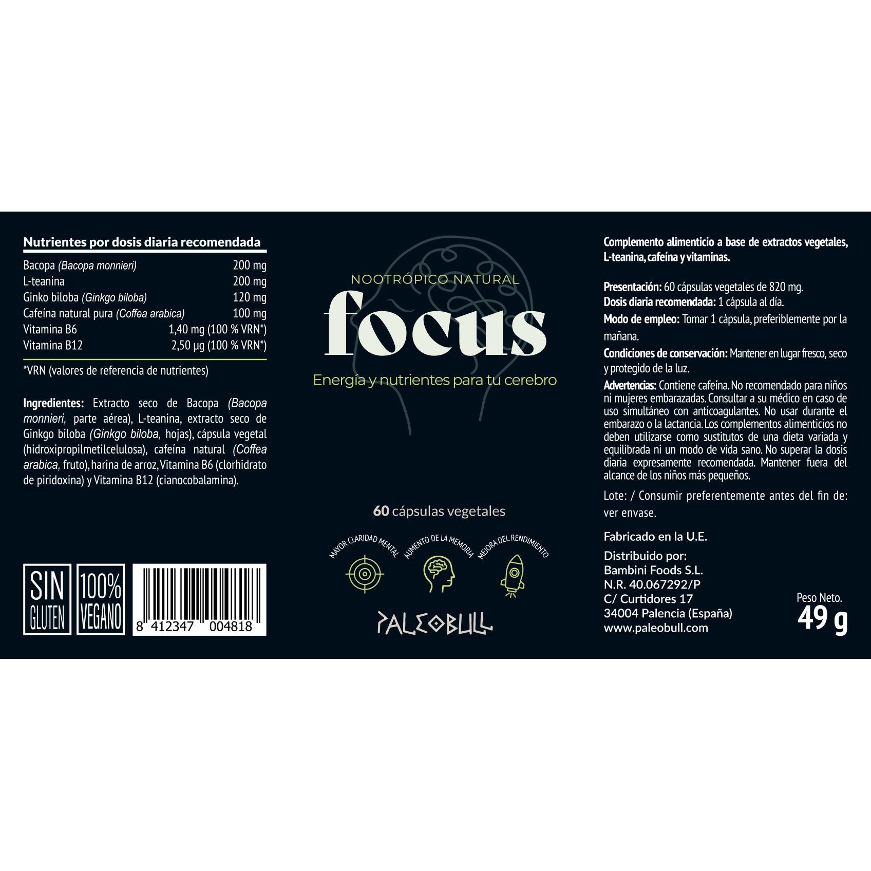 Toda la información sobre "Focus Nootrópico Natural Paleobull 60 Caps"