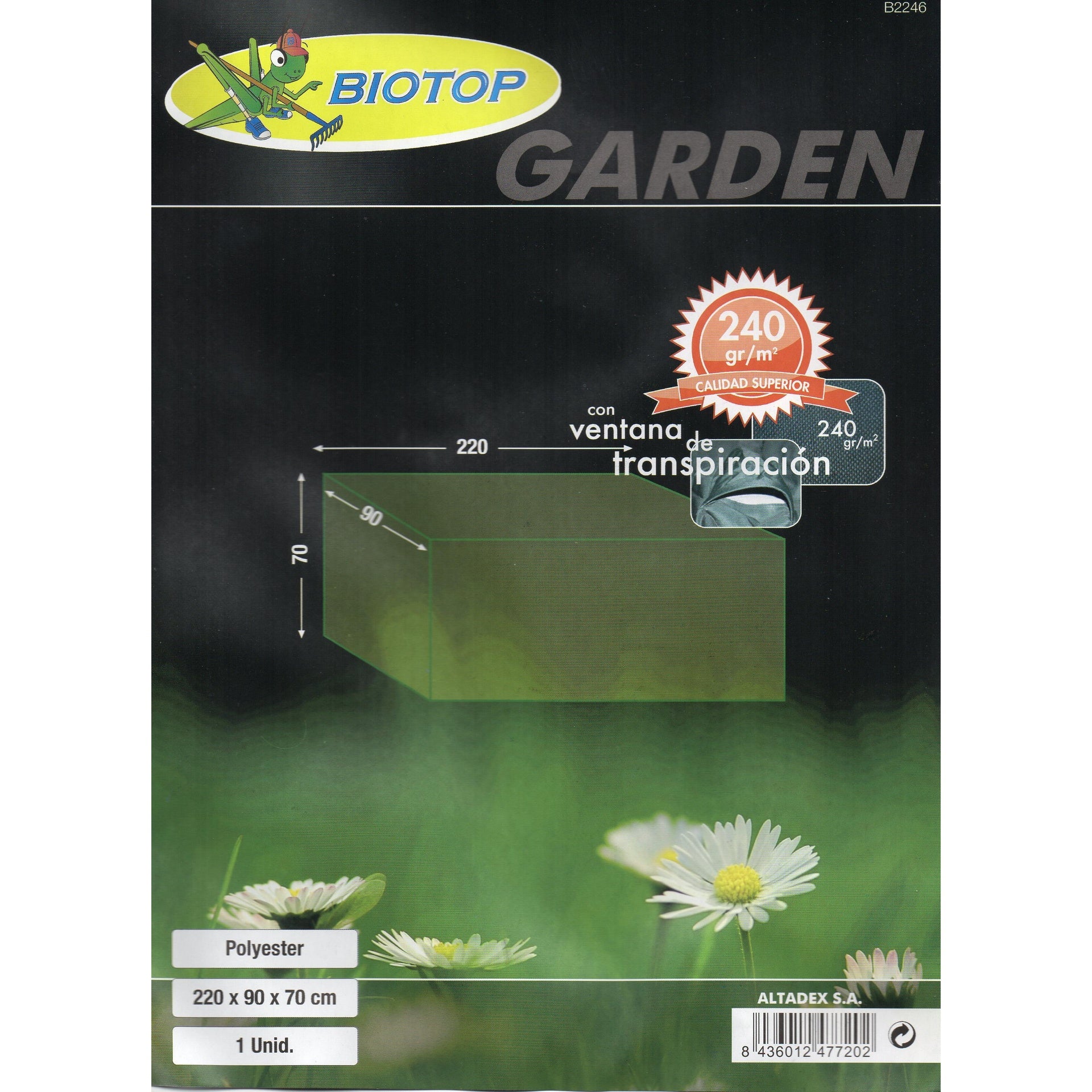 Funda de poliéster cubre sofá. Las fundas de poliéster son impermeables e incorporan bolsillos transpirables en los laterales y ojales + cuerda de sujeción. El grosor de esta funda de poliéster es de 240 gr/m2.